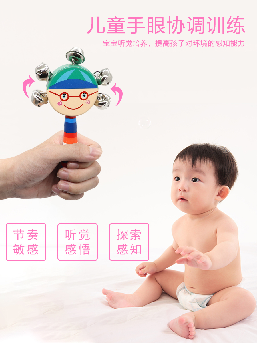 📚 奥尔夫乐器婴幼儿园串铃木质手铃摇铃儿童音乐玩具打击鼓乐器组合