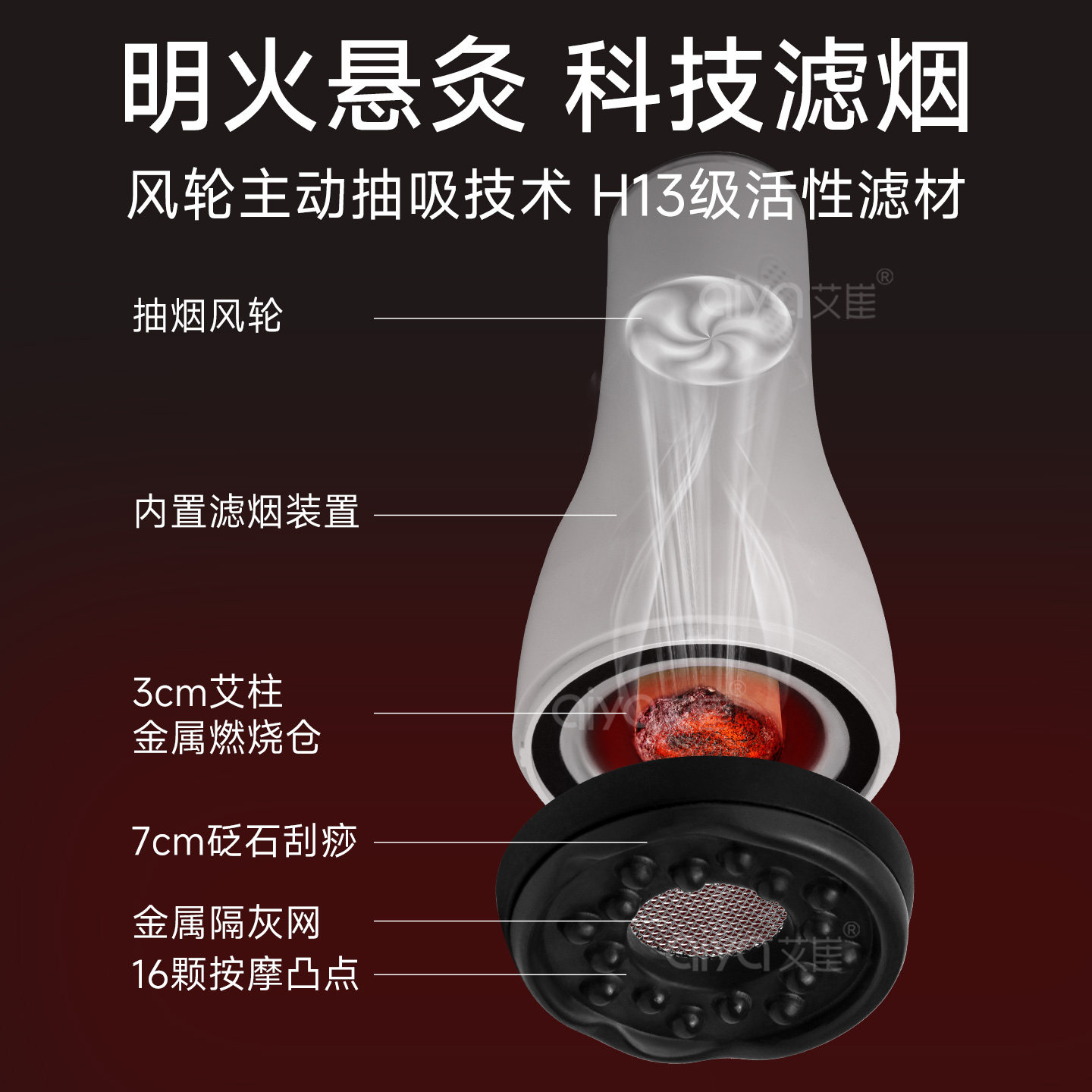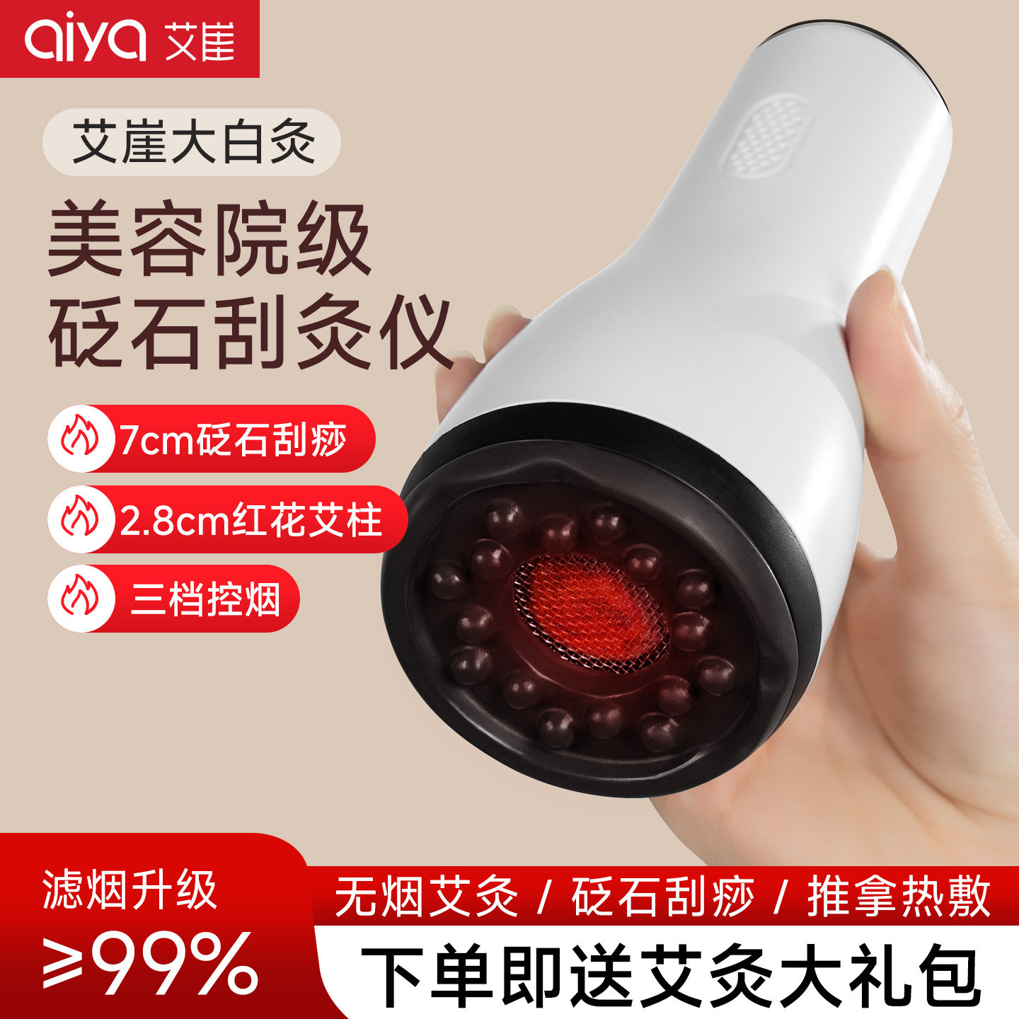 📚 艾崖大白灸无烟明火电动艾灸盒推拿按摩刷疏通筋络砭石刮痧艾灸仪