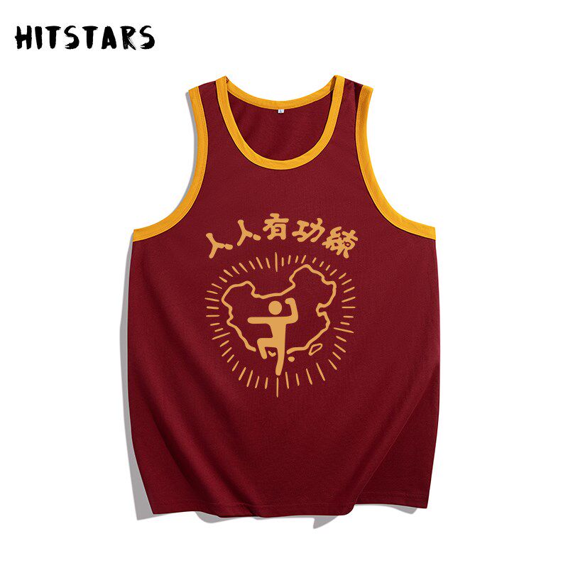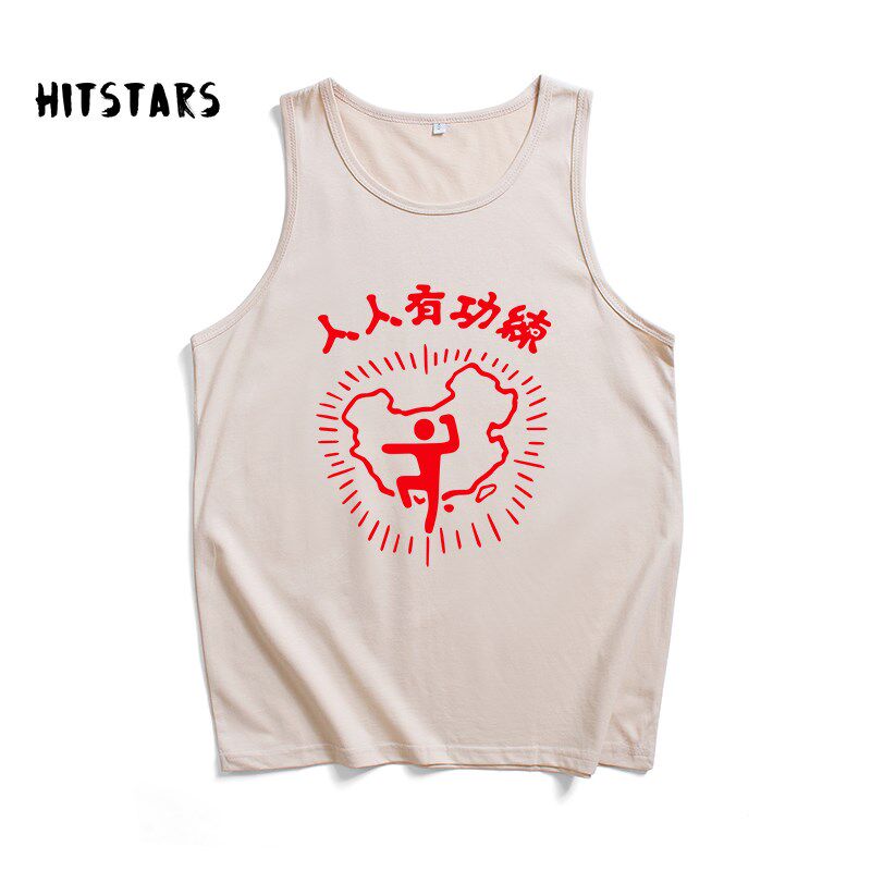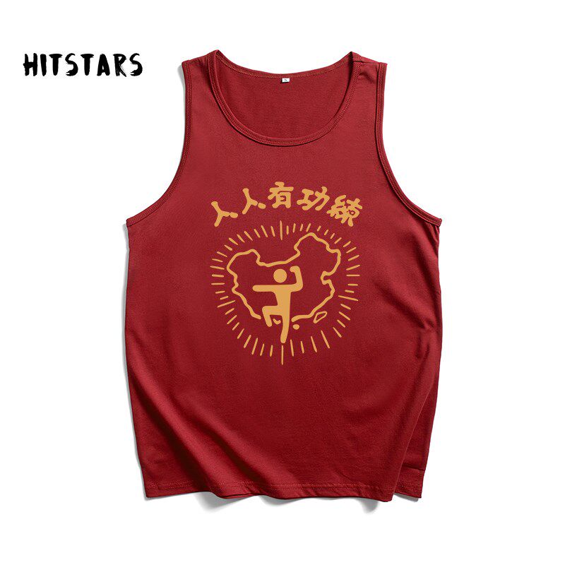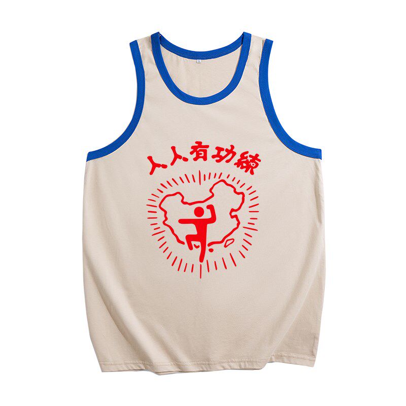 📚 国潮复古人人有功练印花纯棉背心男健身宽松夏季新款无袖坎肩上衣