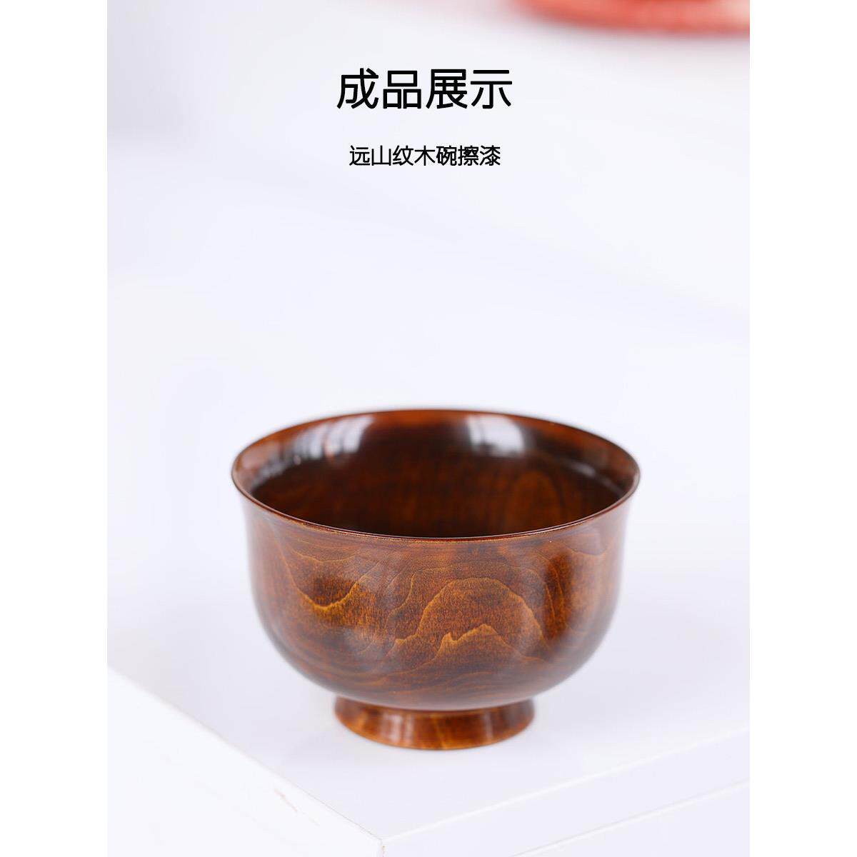 📚 大漆土漆生漆漆器木胎 远山纹木胎碗原木无漆漆画漆艺材料