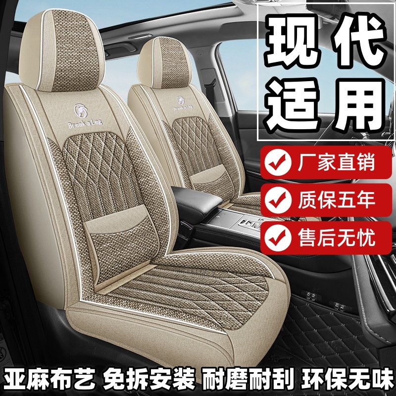 📚 现代ix35朗动ix25伊兰特领动途胜座套全包围四季亚麻布艺座椅套