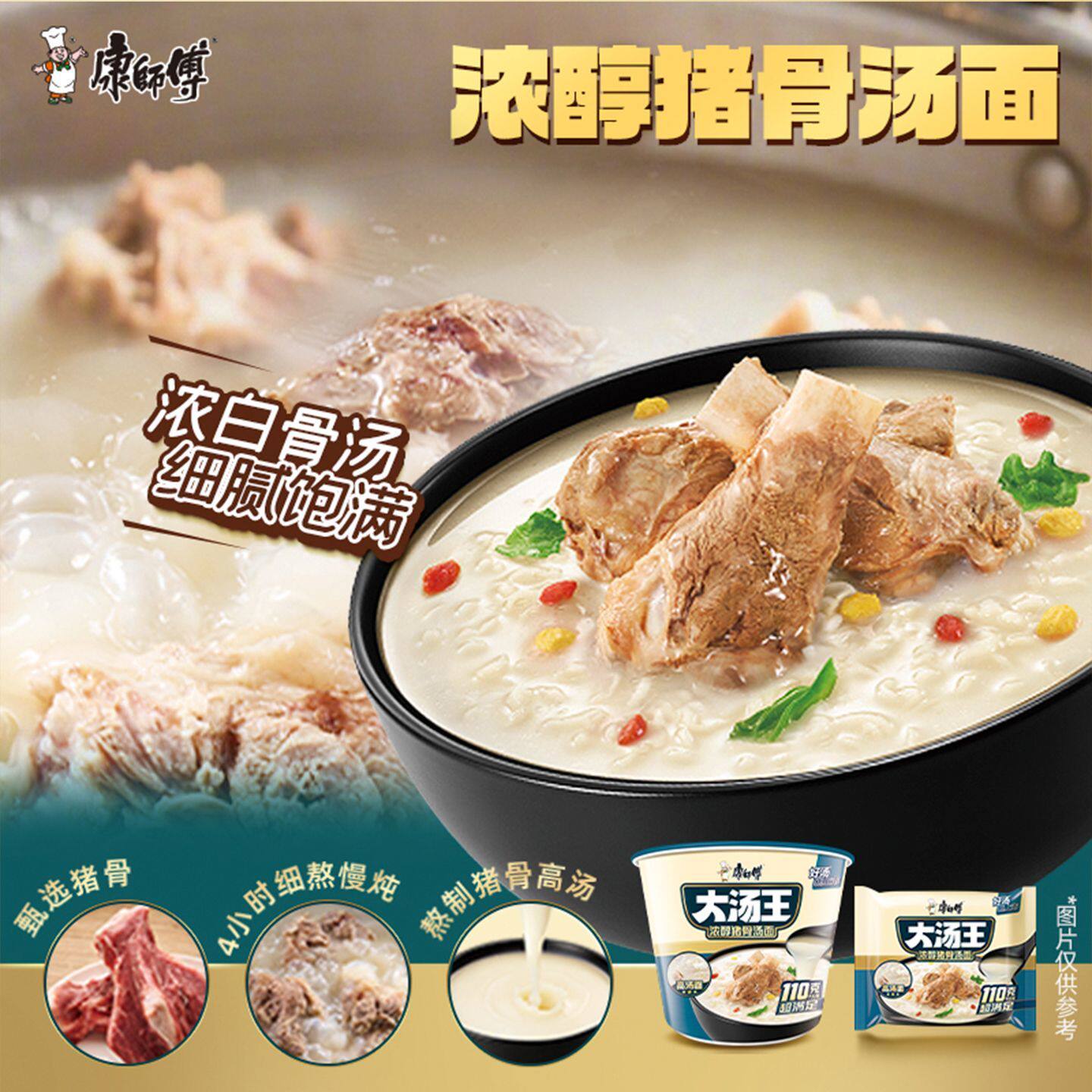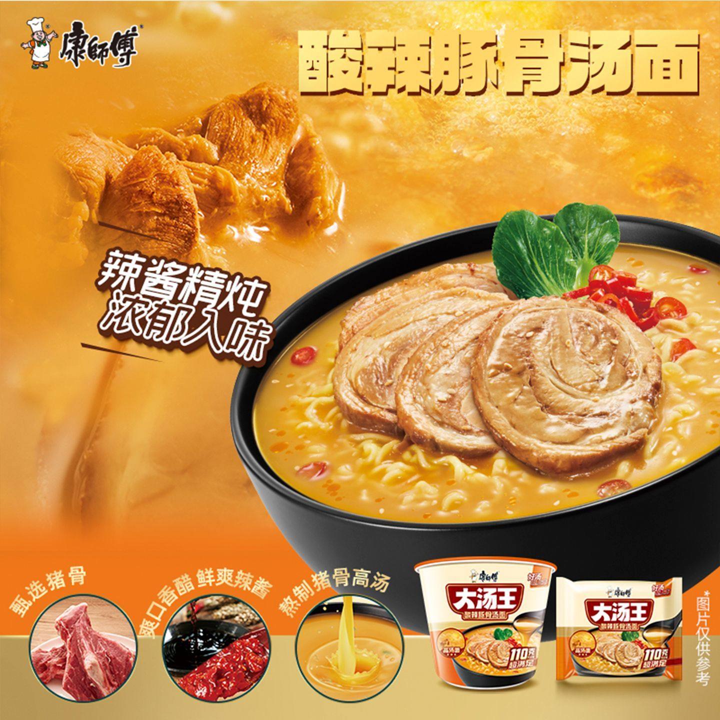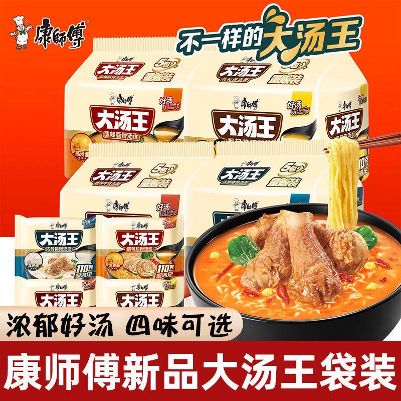 📚 康师傅大汤王5连包酸辣豚骨猪骨枸杞鸡汤面高汤方便面速食泡面