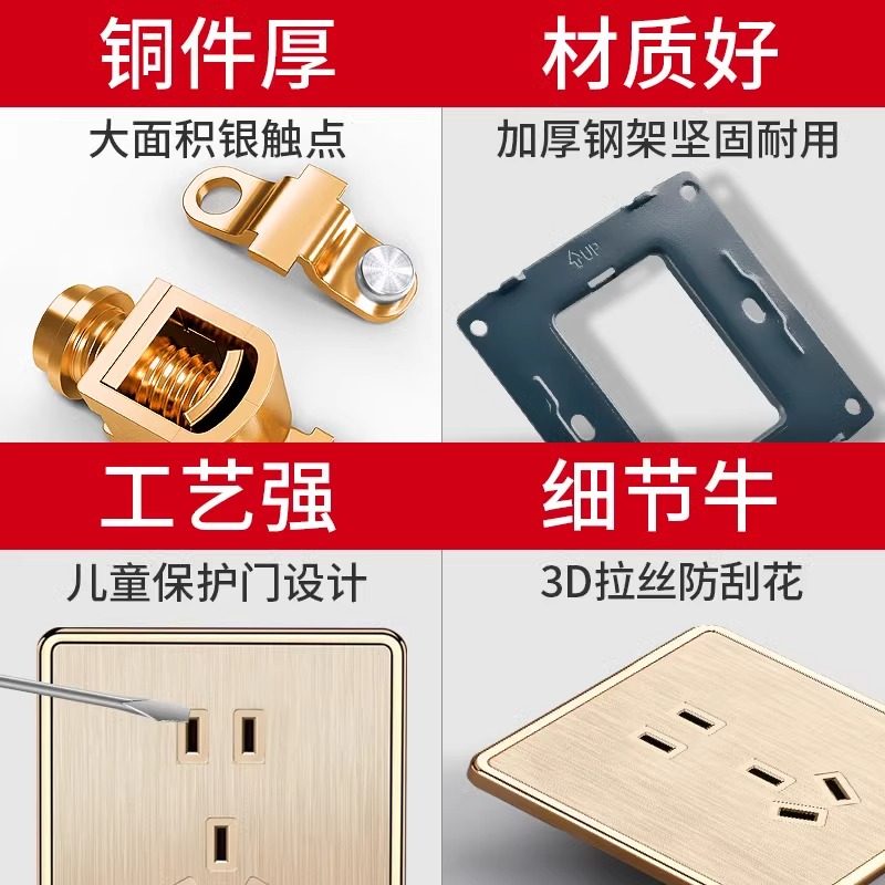 📚 国际电工暗装86型家用墙壁USB五孔电源带一开双控16A开关插座面板