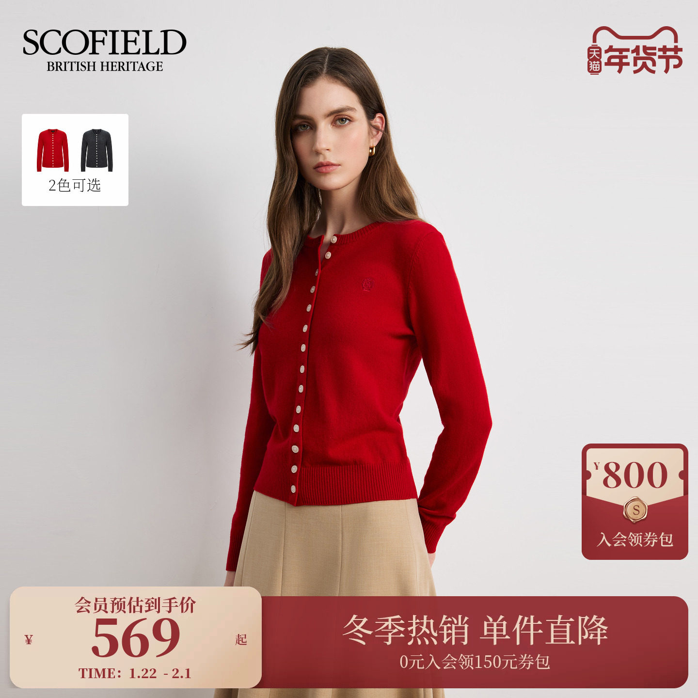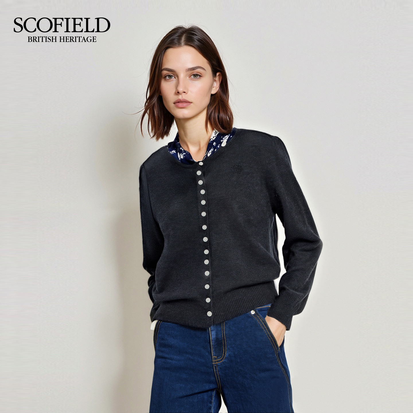 📚 【美丽诺羊毛】Scofield女装简约圆领针织开衫刺绣设计2025冬新品