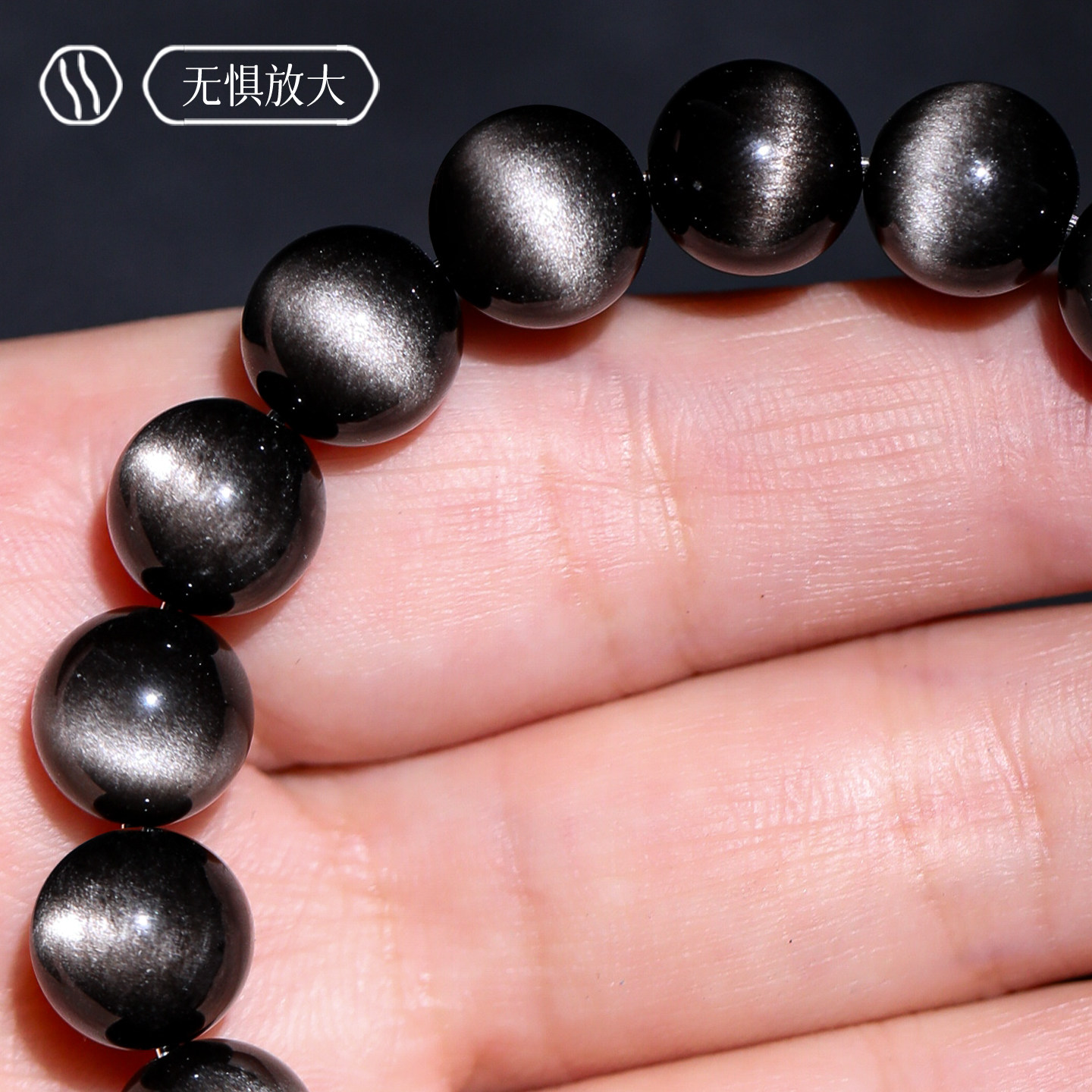📚 毕业级一线天银曜石手链天然银眼黑曜石手串男银耀石女猫眼保平安