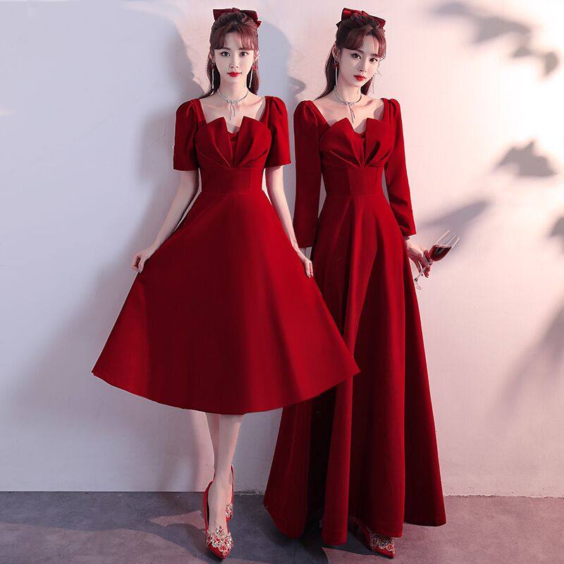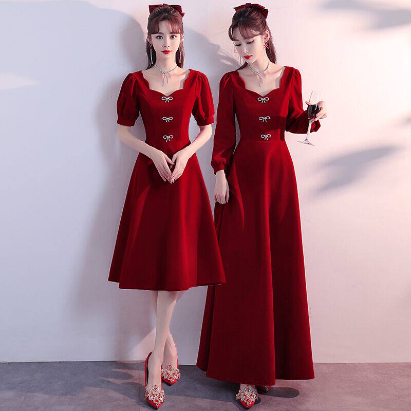 📚 酒红色敬酒服新娘2025新款秋冬订婚结婚回门平时可穿法式丝绒礼服