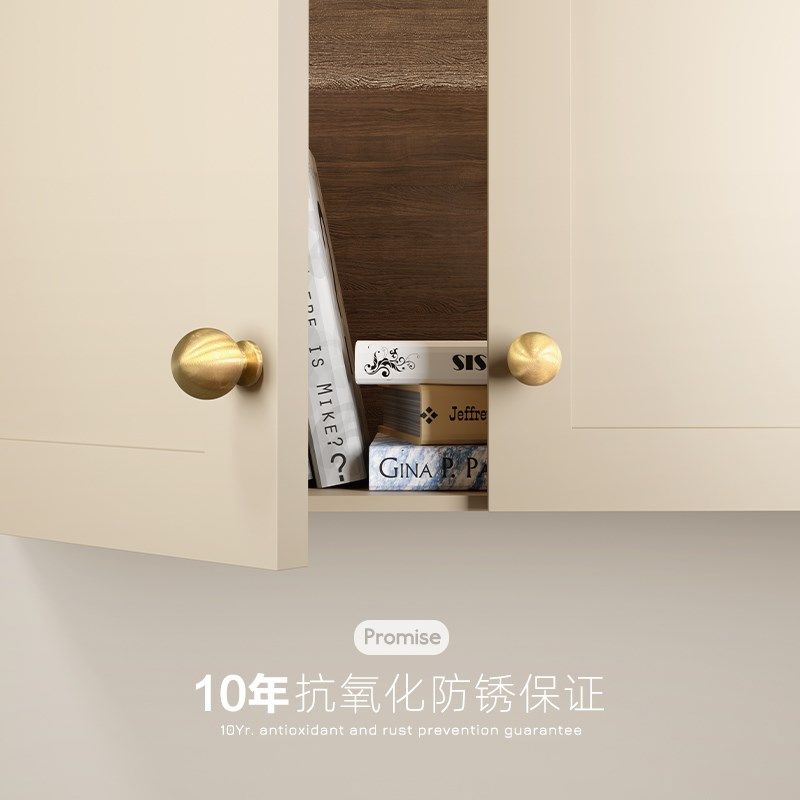 📚 黄铜圆球门把手法式金色轻奢极简单孔橱柜衣柜抽屉柜子柜门小拉手