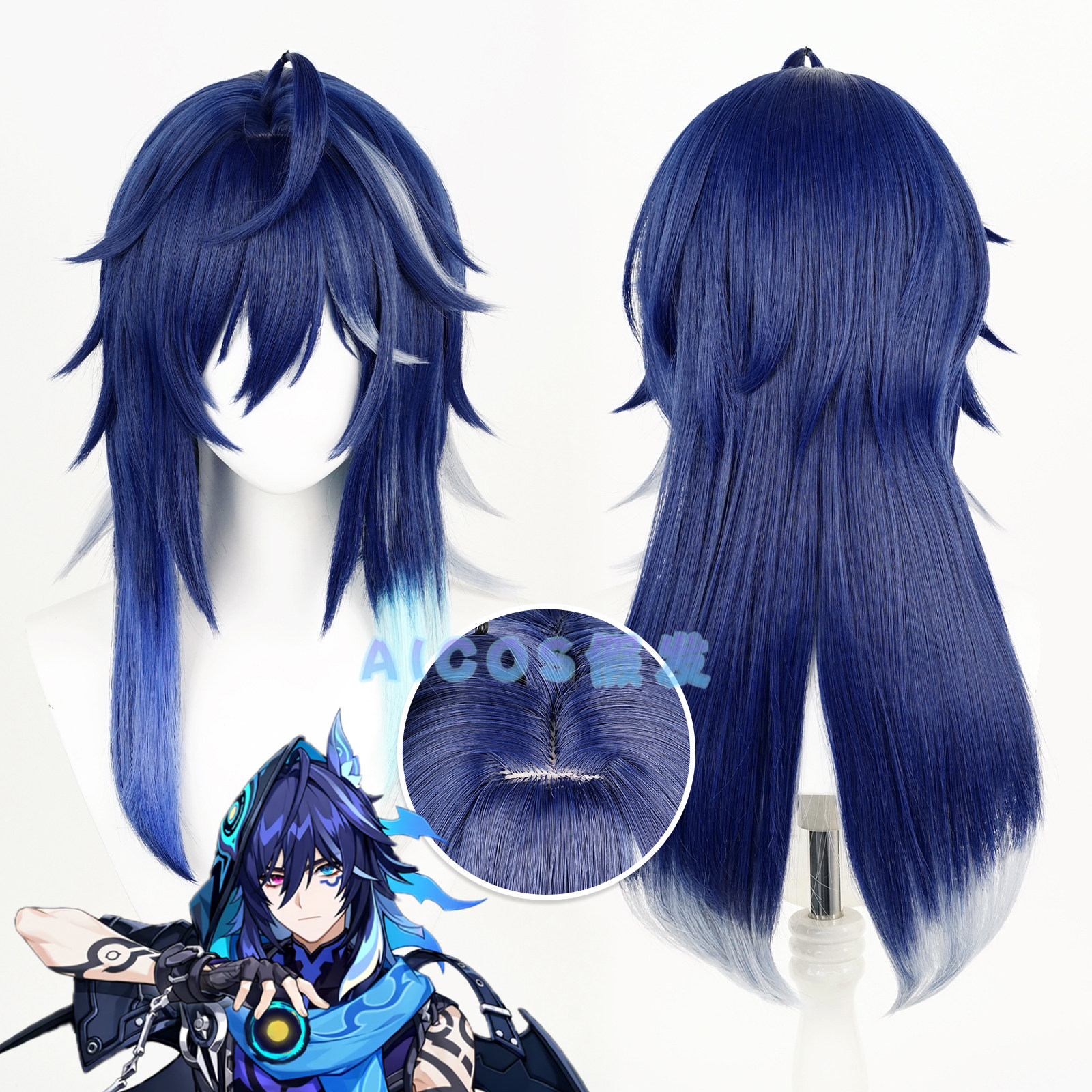 📚 Aicos 原 欧洛伦 神 cos假发 头皮顶 造型款式 蓝色挑染