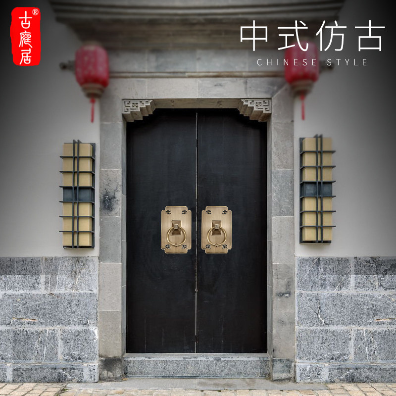 📚 仿古大门拉手中式黄铜门环装饰配件复古新中式门拉手古铜木门把手