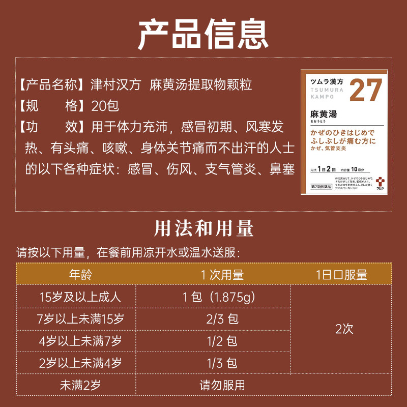 📚 日本津村汉方麻黄汤支气管炎过敏性鼻炎头痛咳嗽感冒伤风鼻塞体寒