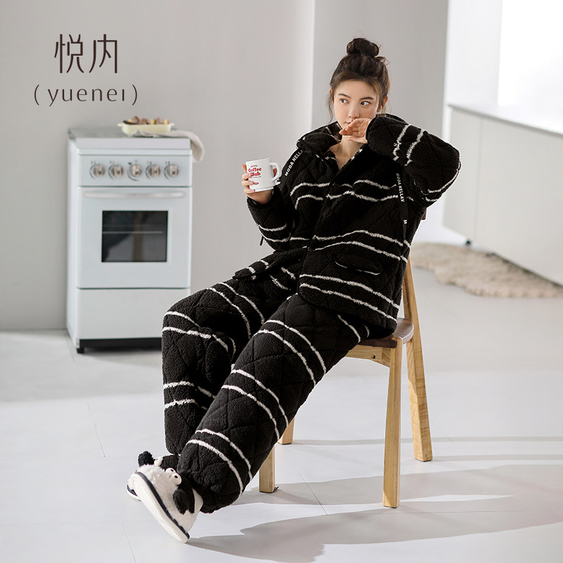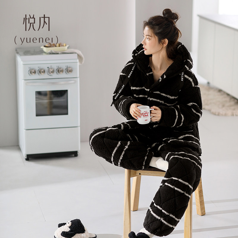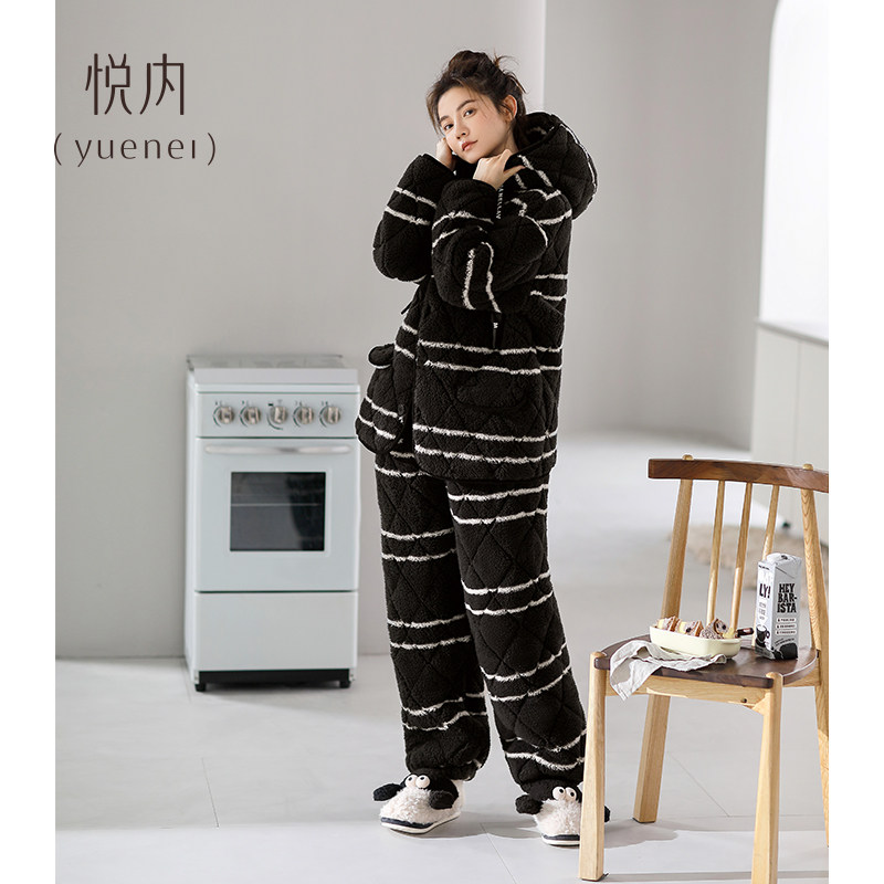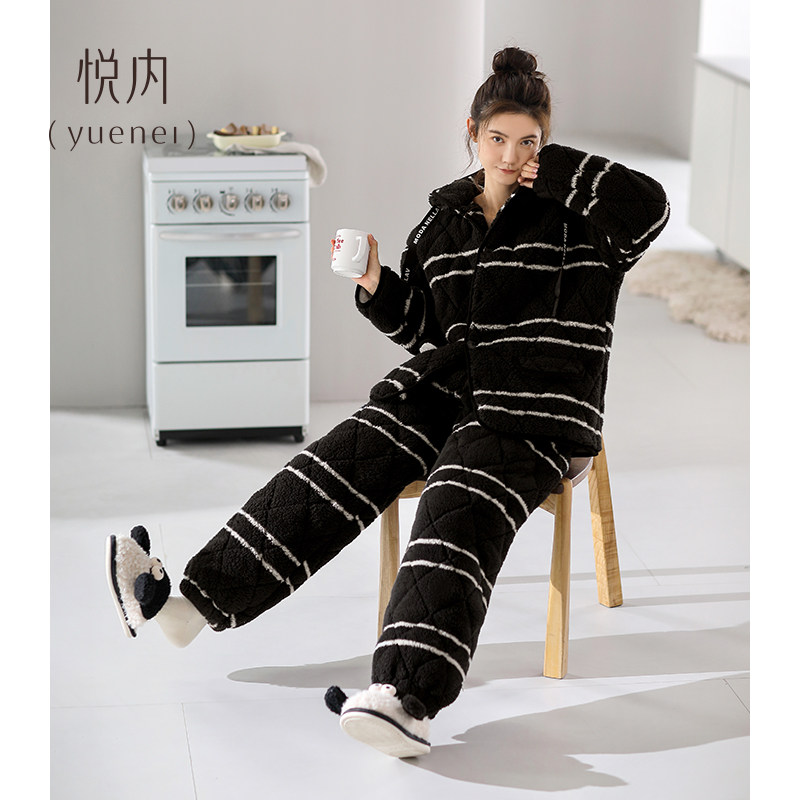 📚 悦内睡衣女款秋冬季冬款冬天珊瑚绒三层加厚夹棉加绒家居服可外穿