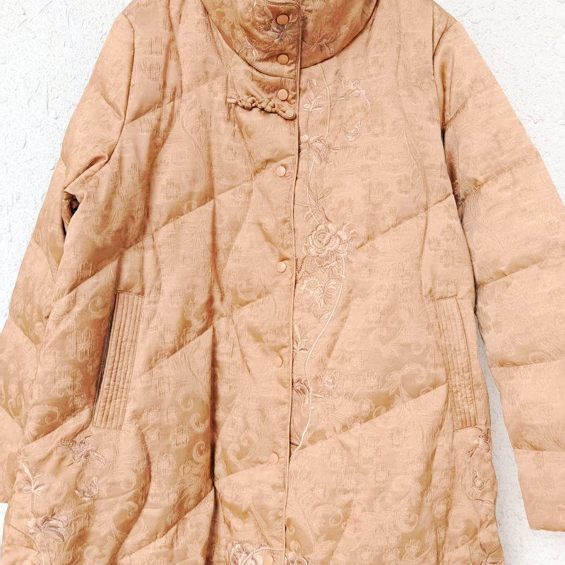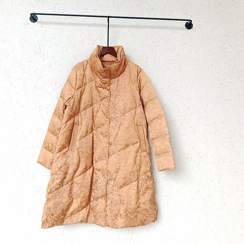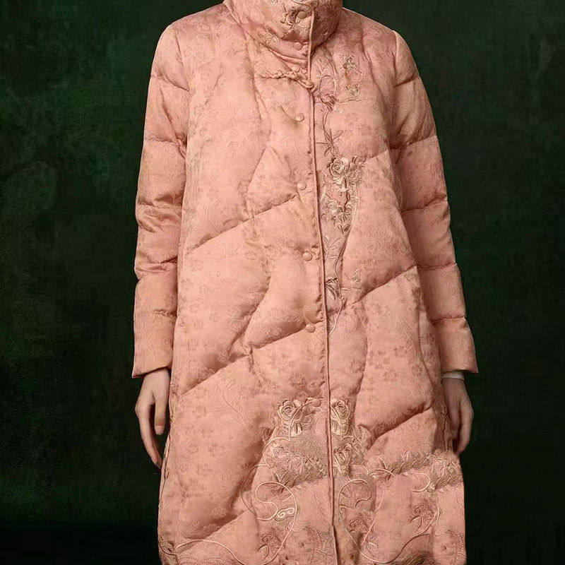 📚 [鹅绒服]卡米兰提花白鹅绒羽绒服2025冬季新款刺绣中长款羽绒外套