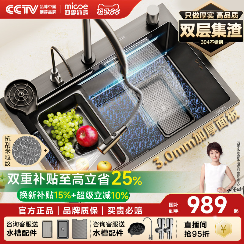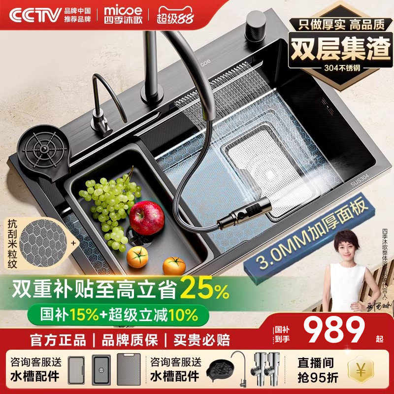 99¥ CZ057 nKJ1UihDsk3¥ https://m.tb.cn/h.7rU1Np0 四季沐歌厨房水槽洗菜盆飞瀑瀑布集渣过滤大单槽推荐选包安装拆旧 --------------------- 【原售价】6,999元 【现售价】781.8元。