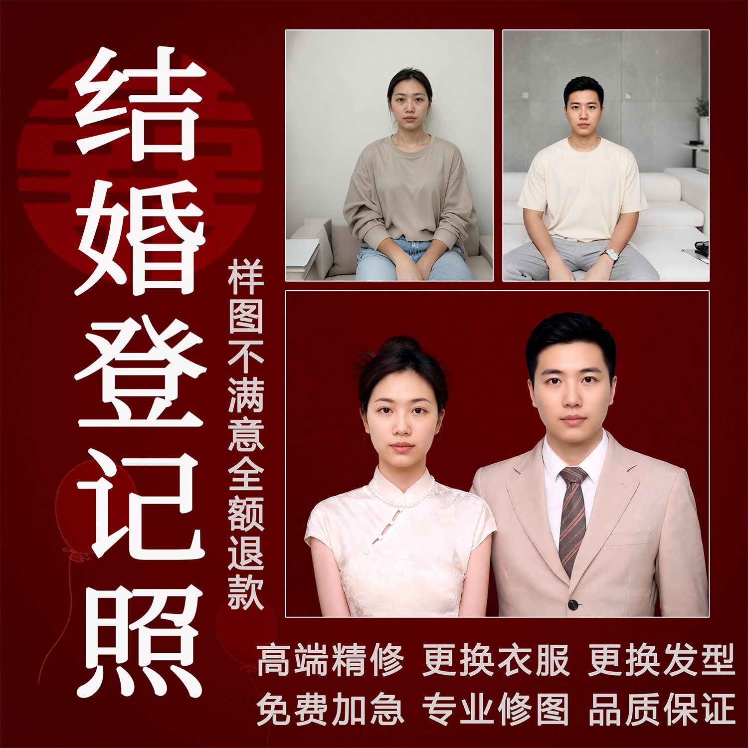 📚 登记照领证结婚证件照PS精修照片P图换发型衣服底色专业抠图合成