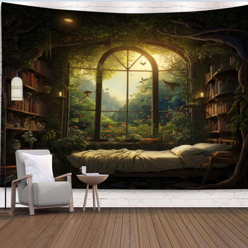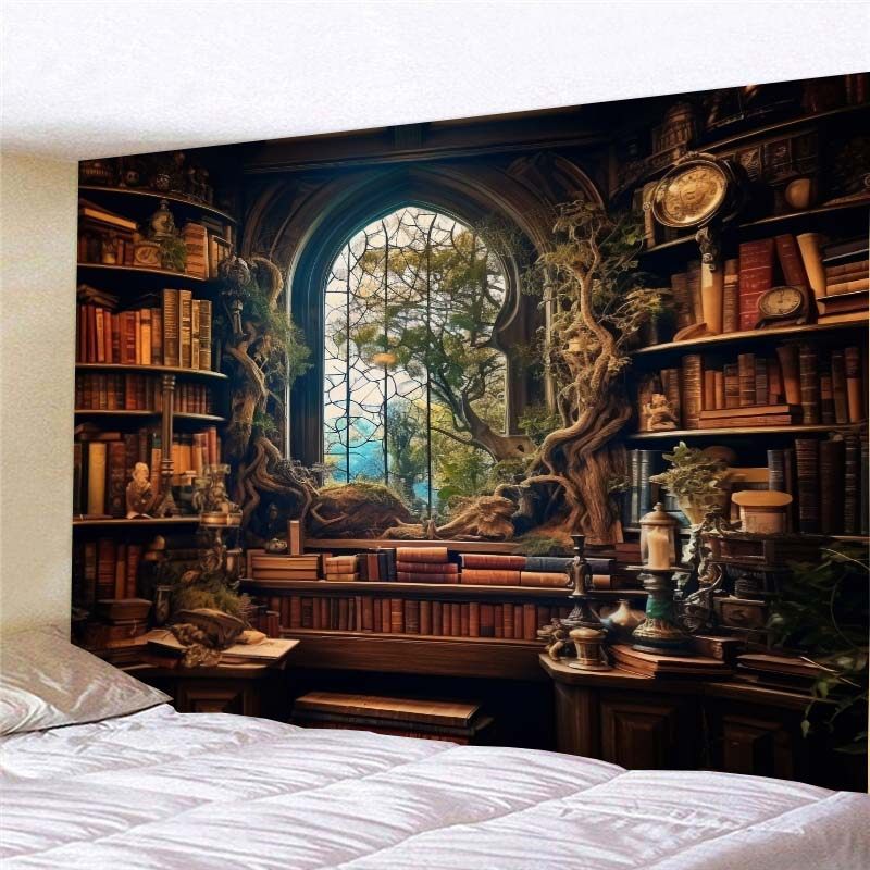 💥复古森林书架背景布卧室床头墙面装饰挂布房间改造直播挂毯,券后价21!💖梦幻升级时刻✨