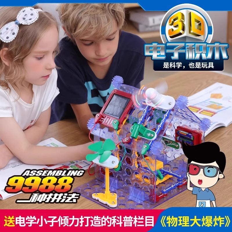 🎁标题:嗨,小家伙们!👦 电学小子电子积木百拼,科学实验新宠来啦!