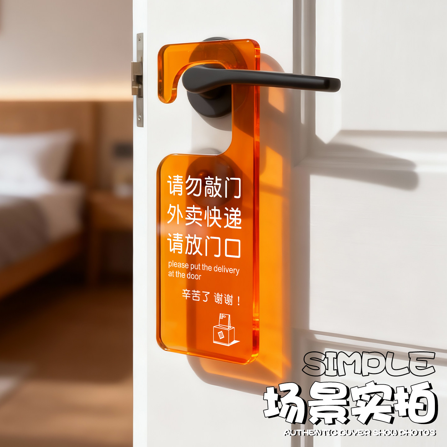 📚 创意外卖快递请放门口指示牌定制请勿不要敲门展示挂牌酒店请勿打扰请即打扫挂门上牌子亚克力门把手标志标识