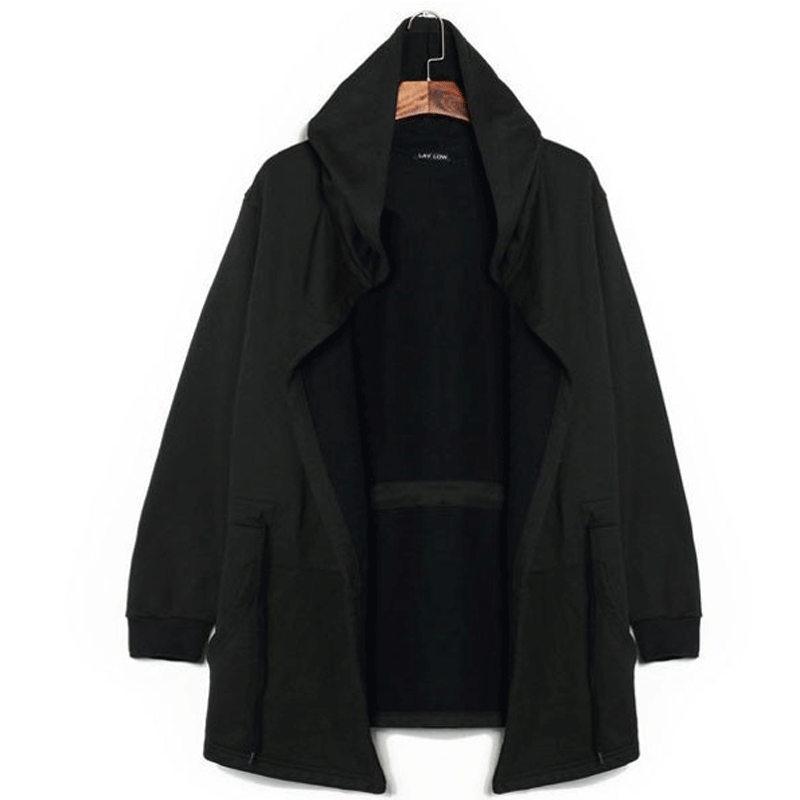 📚 大兜帽卫衣男中长款黑色巫师帽披风斗篷法师长袍风衣男外套衣服男