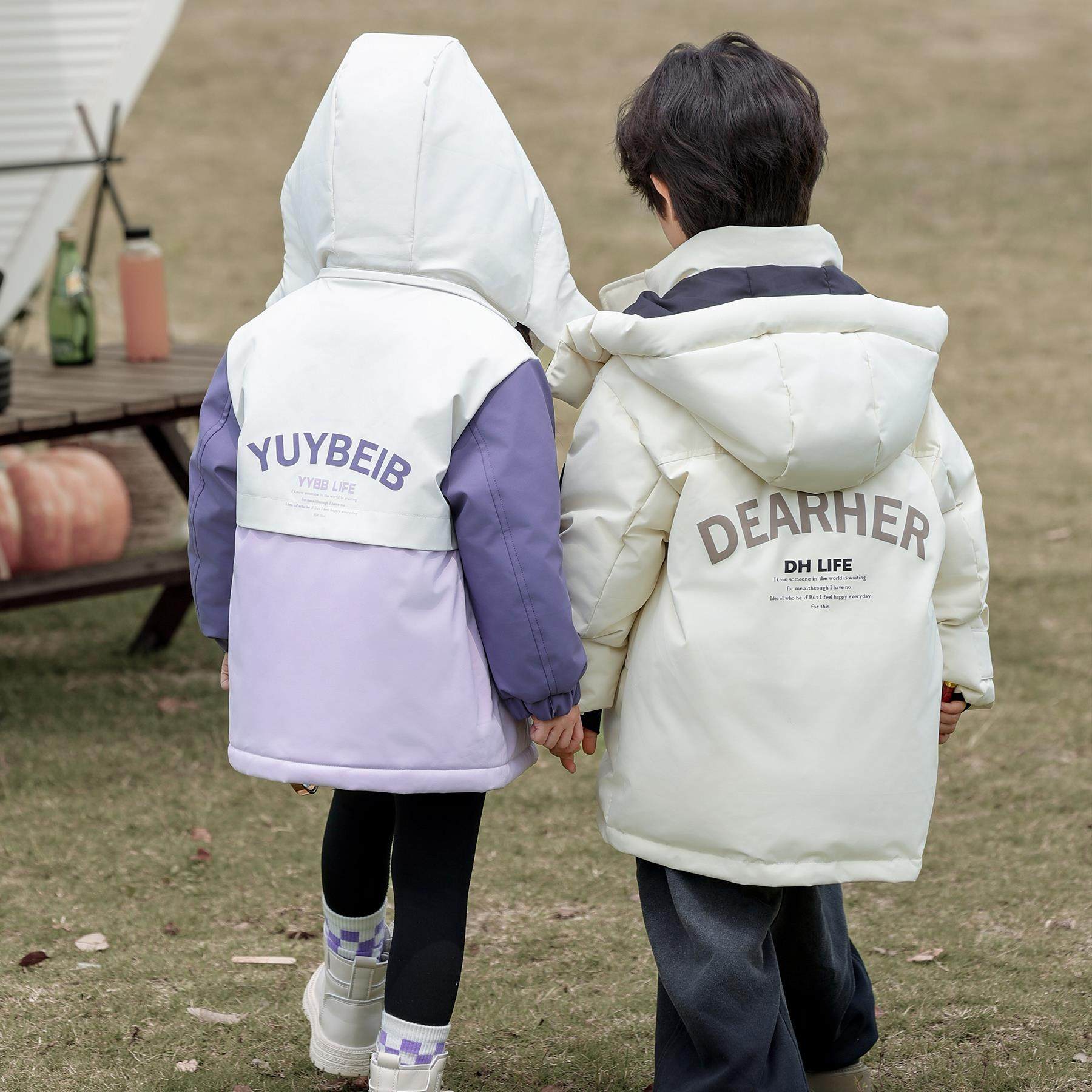 📚 YUYBEIB儿童羽绒服石墨烯保暖中长款中大童三防面料工装宝宝外套