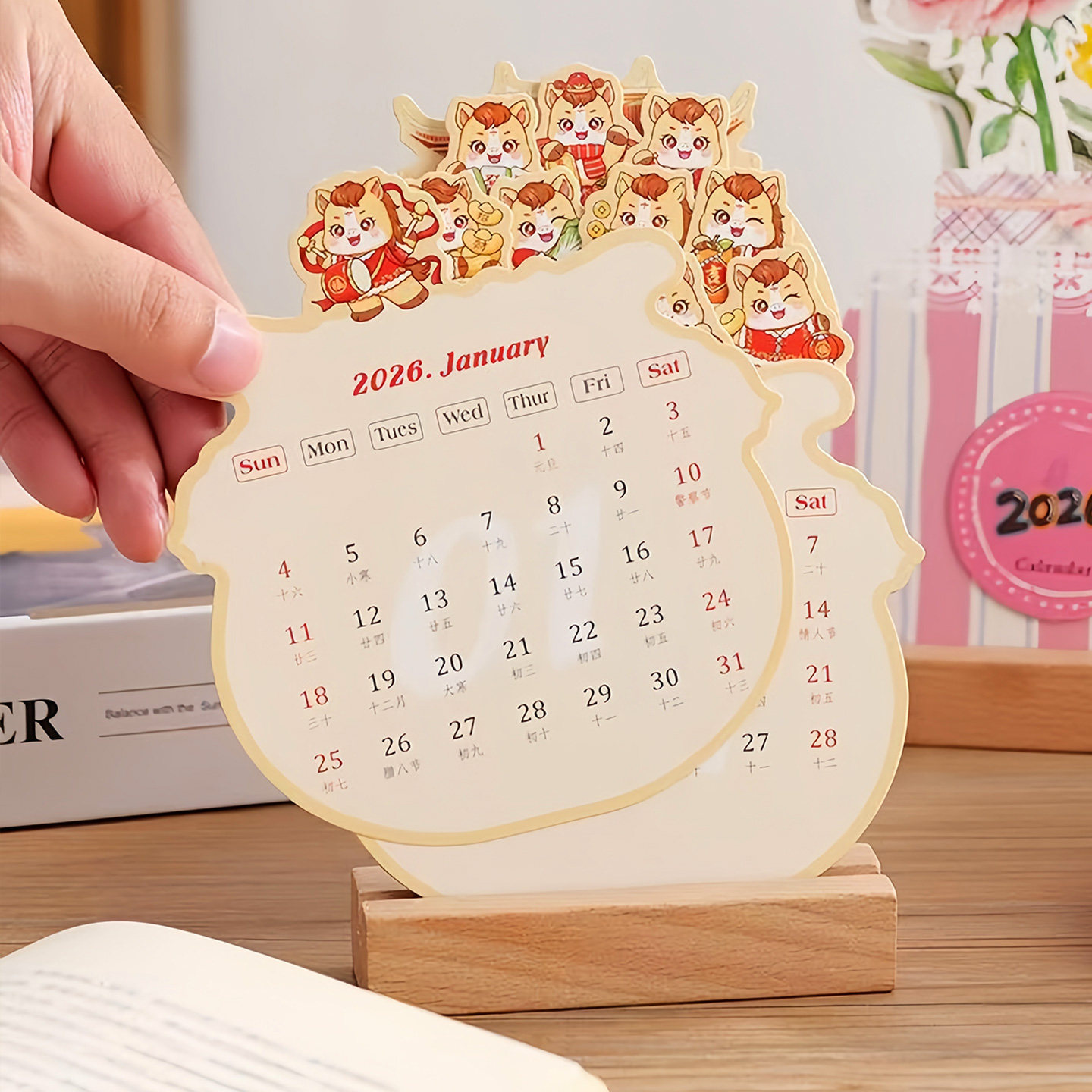 📚 2026年新款马年台历立体花卉ins风小清新竖款简约卡片式桌面台历