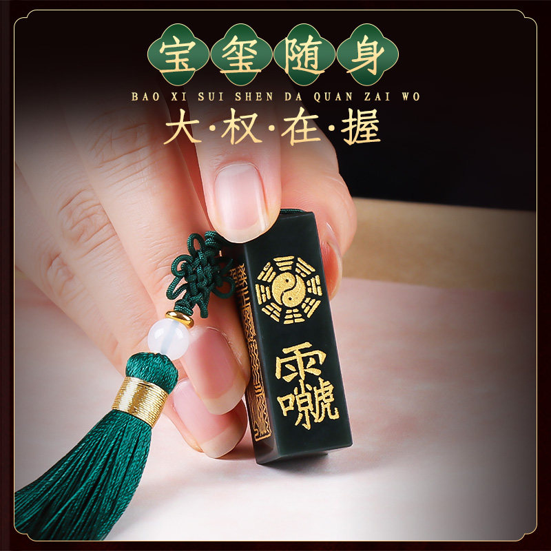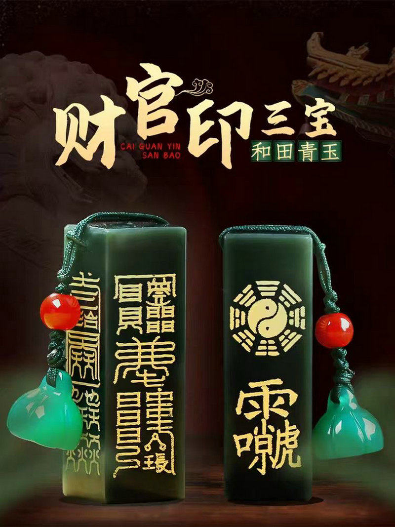 📚 原创和田青玉吊坠护身中式招财官印三宝出入平安项链男女挂件饰品
