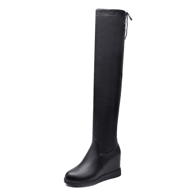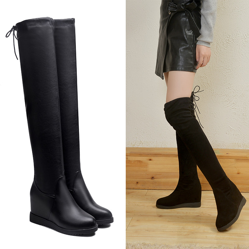 📚 瘦腿高筒长靴女内增高显瘦坡跟棉靴子2020秋冬季弹力过膝加绒马靴