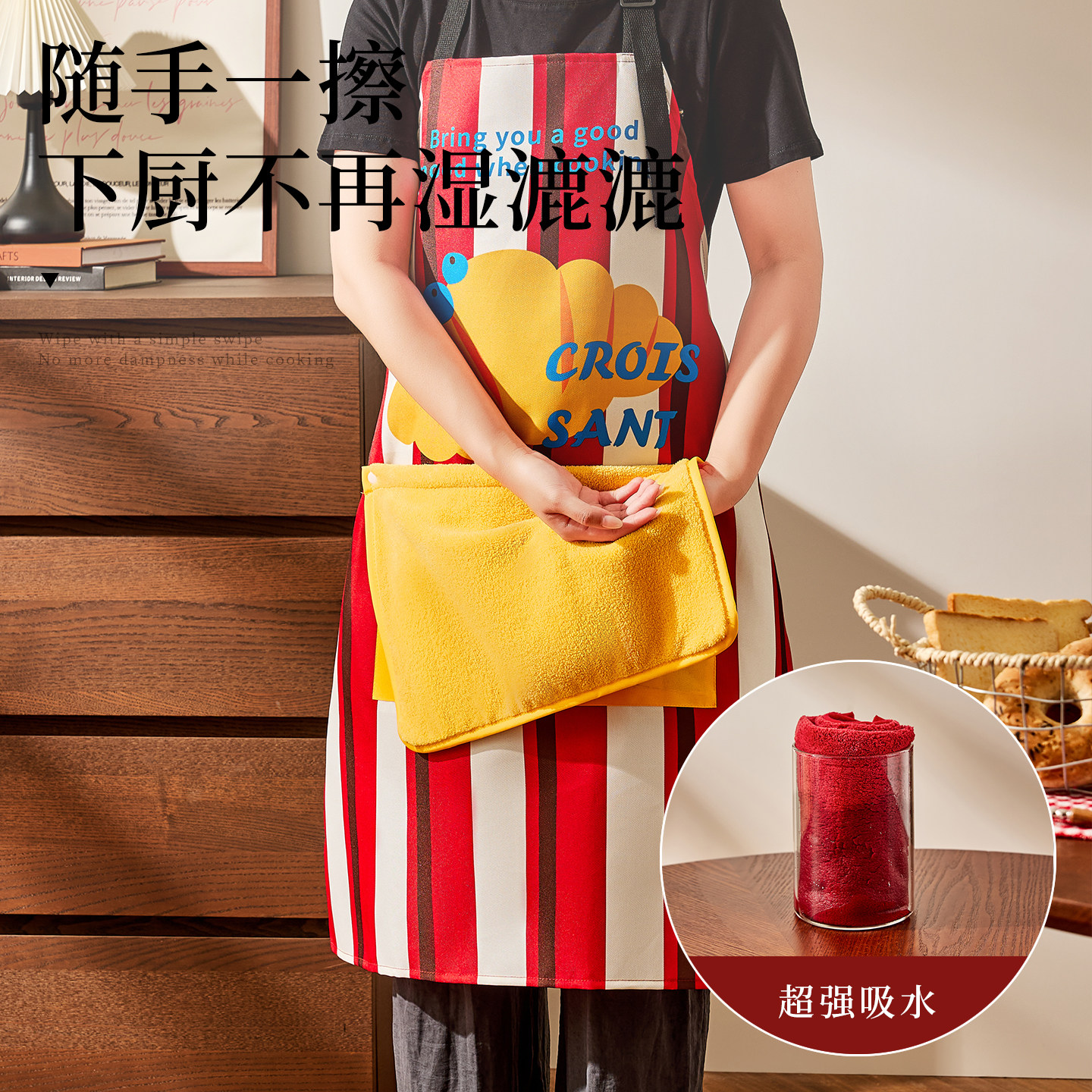 📚 可擦手围裙厨房家用2025新款防油防水罩衣女高颜值年轻款做饭围裙