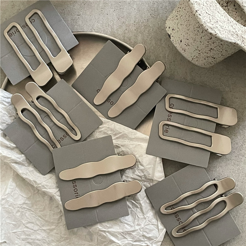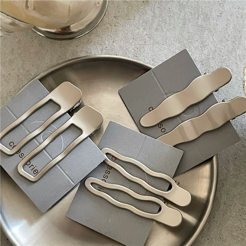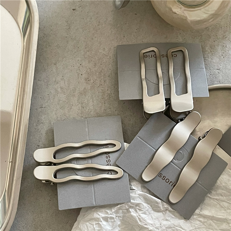 📚 冷淡风 金属银色波浪线条发夹对夹 几何长方形水滴鸭嘴夹刘海夹新