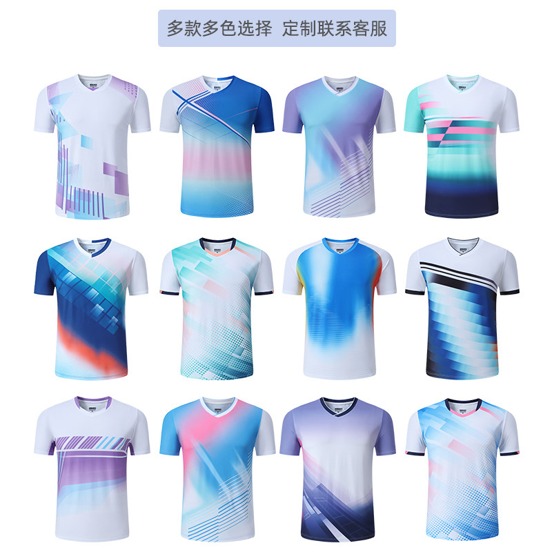 📚 新款羽毛球服套装男女速干运动短袖上衣网排球乒乓球比赛队服定制
