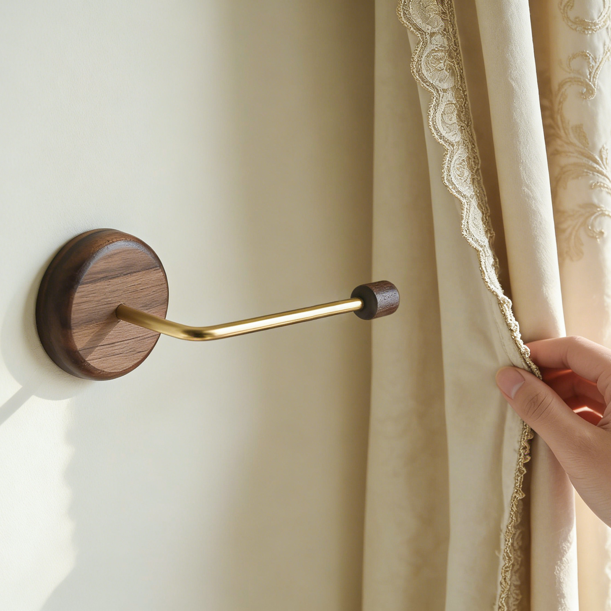 📚 黑胡桃木纱帘固定器实木窗帘挂钩阳台窗户侧边固定器墙钩装饰挂钩