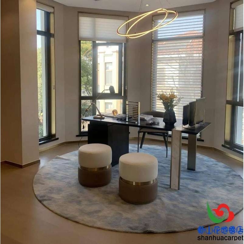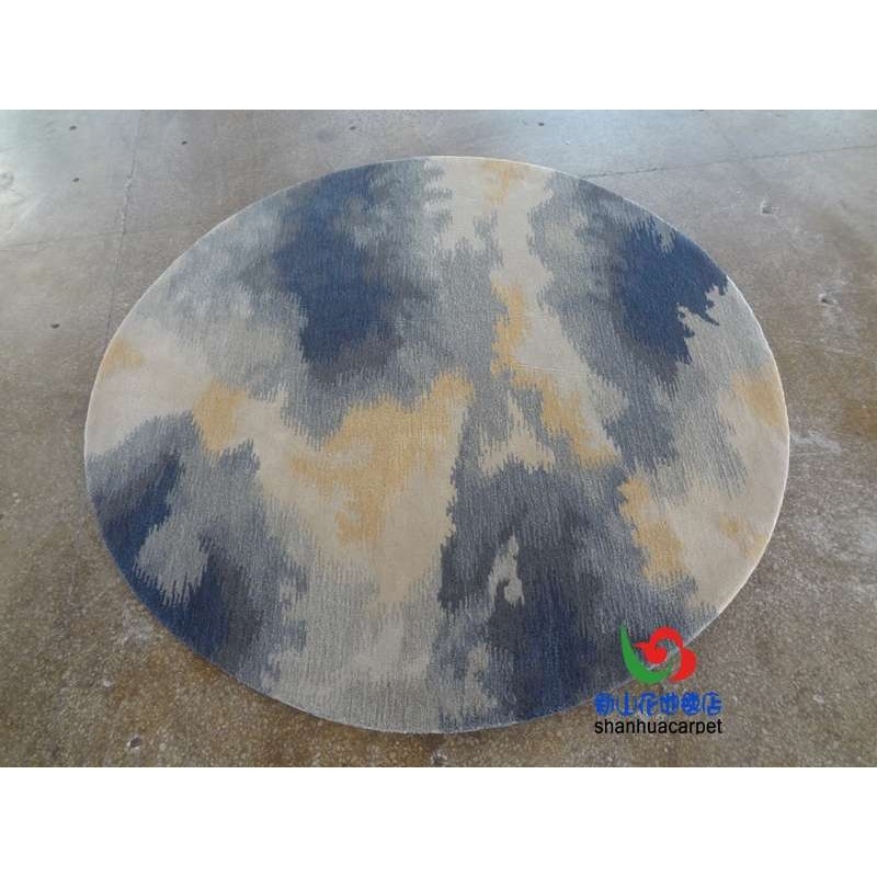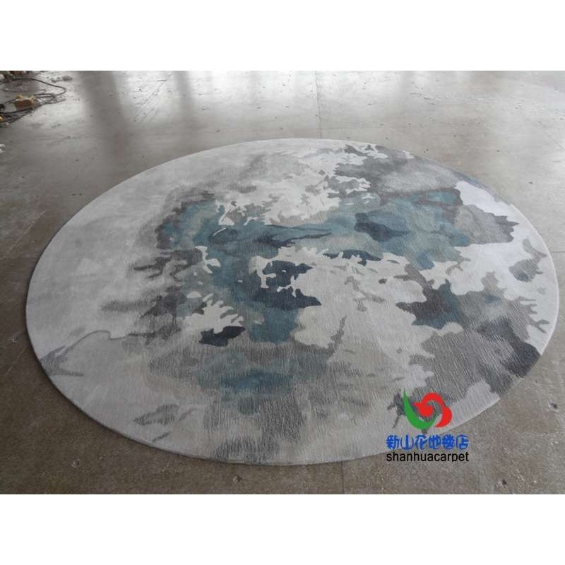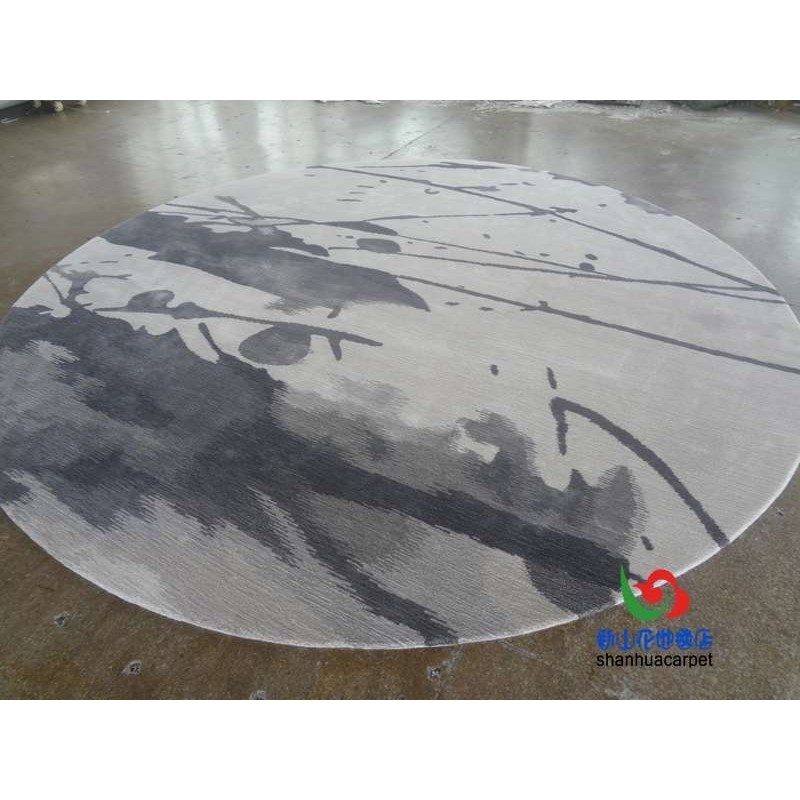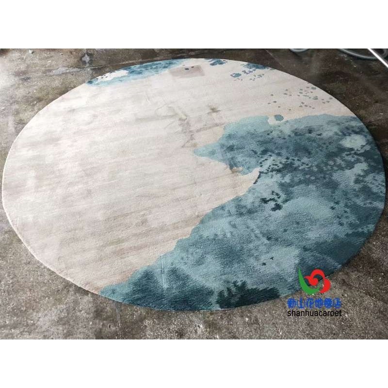 📚 新中式水墨画圆形手工晴纶羊毛别墅客厅茶几地毯餐厅书桌大厅地毯