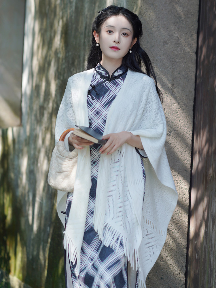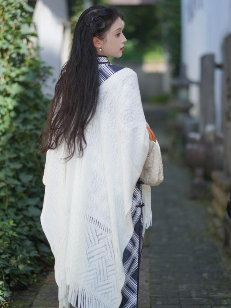 📚 【雪融融】仙女外披米白色流苏披肩镂空百搭针织开衫搭配旗袍无袖