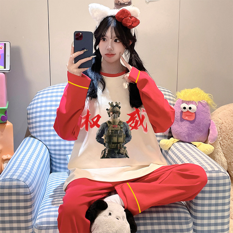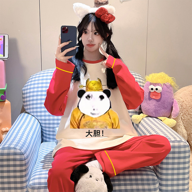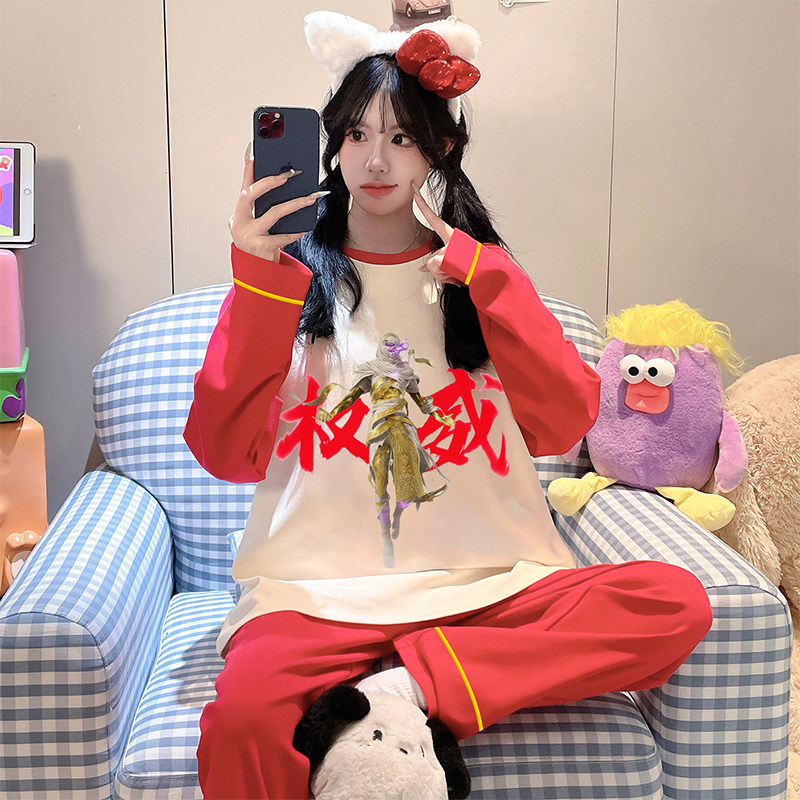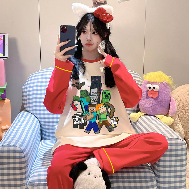📚 我的世界睡衣女款纯棉长袖春秋家居服2026马年本命年衣服红色套装