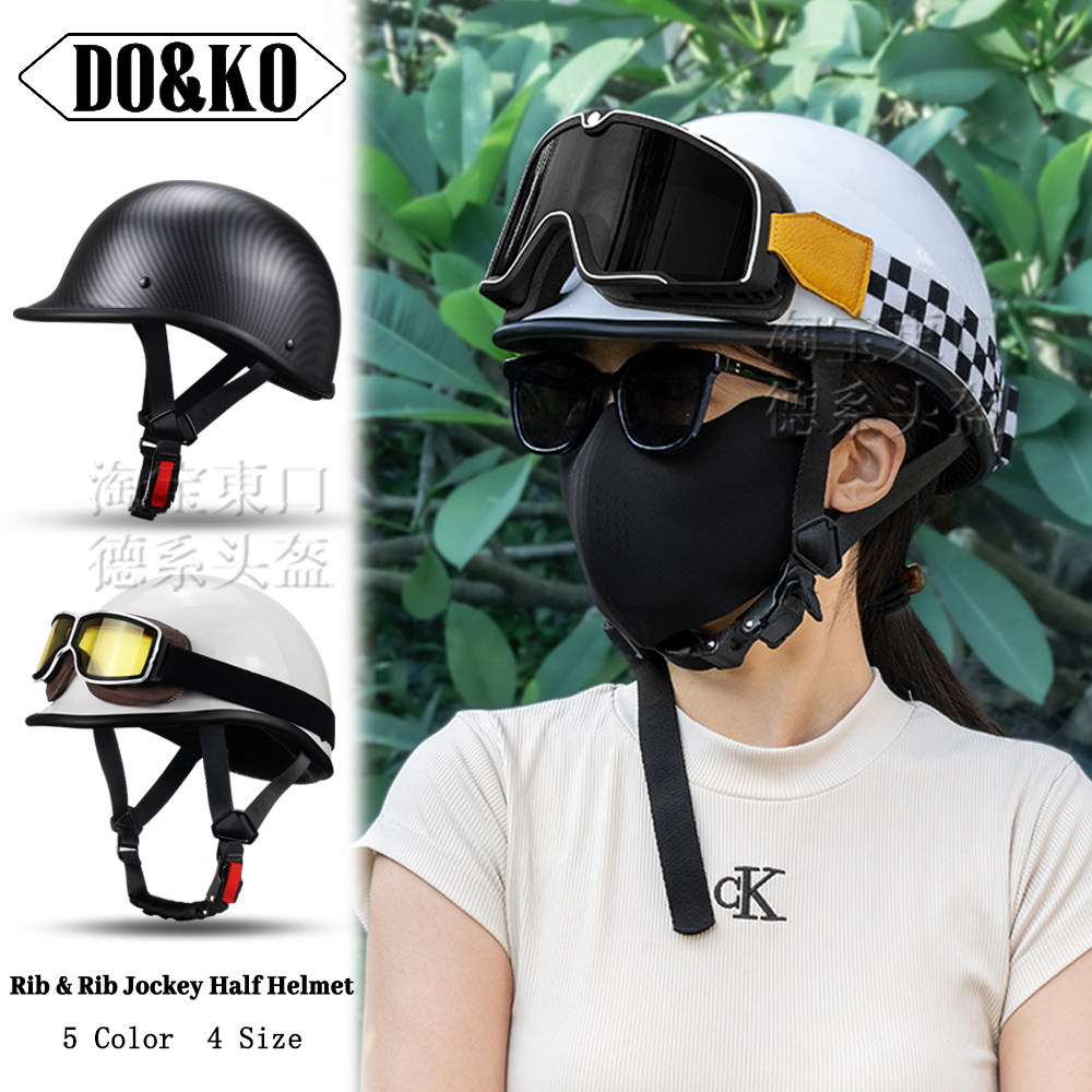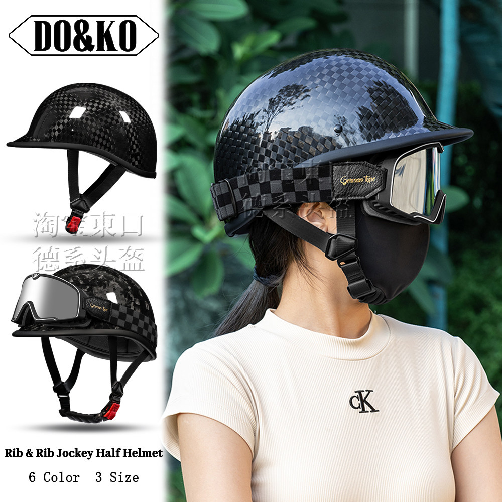 📚 日式复古巡航摩托车半盔机车头盔男女适用于骑行复古瓢盔碳纤维