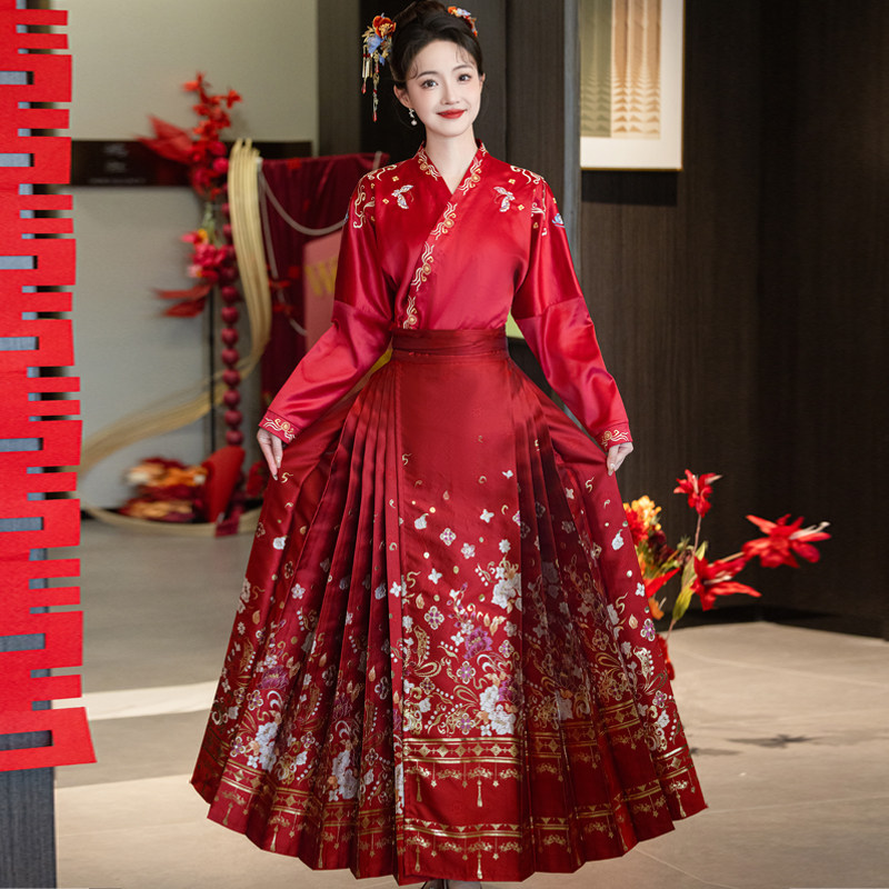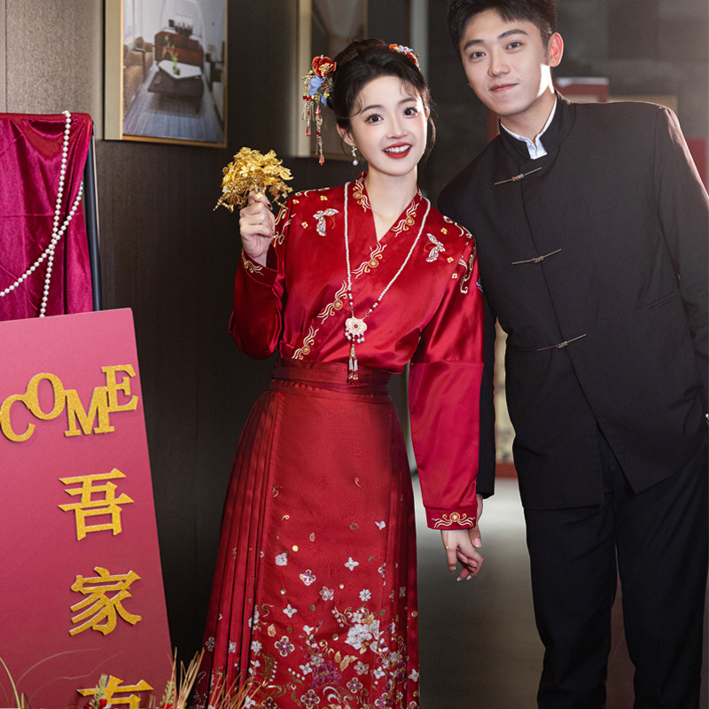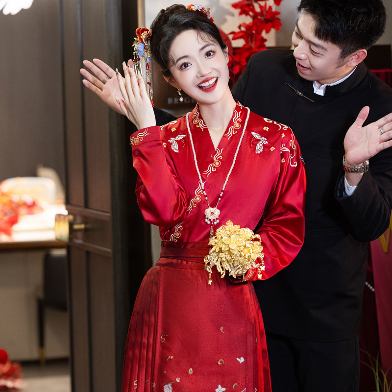 📚 红色订婚马面裙婚服套装结婚敬酒服新娘礼服裙新中式汉服女小个子