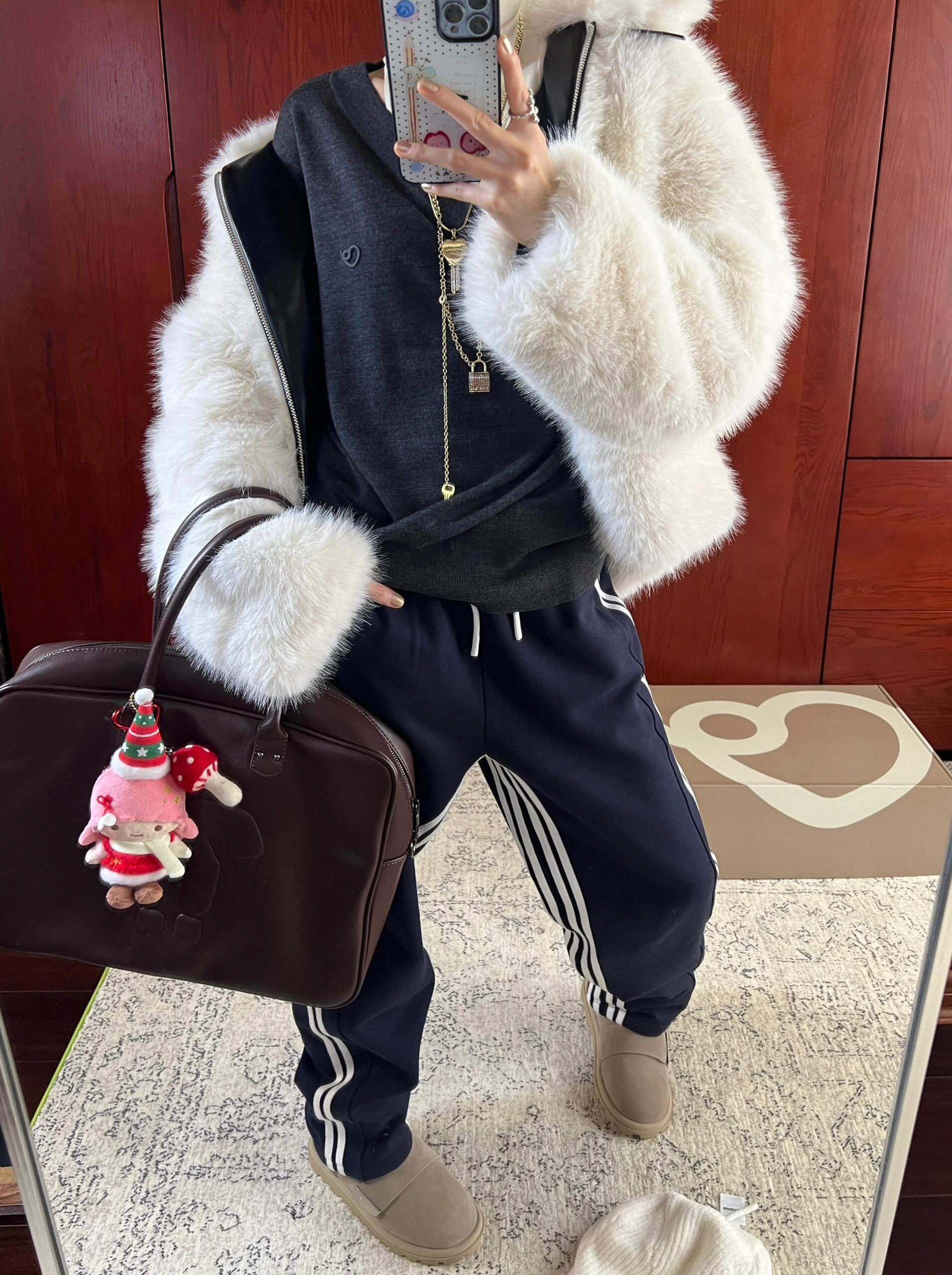 📚 正确版 aoan 拼边加绒运动裤|Bottom下装|白色/灰色/藏蓝色