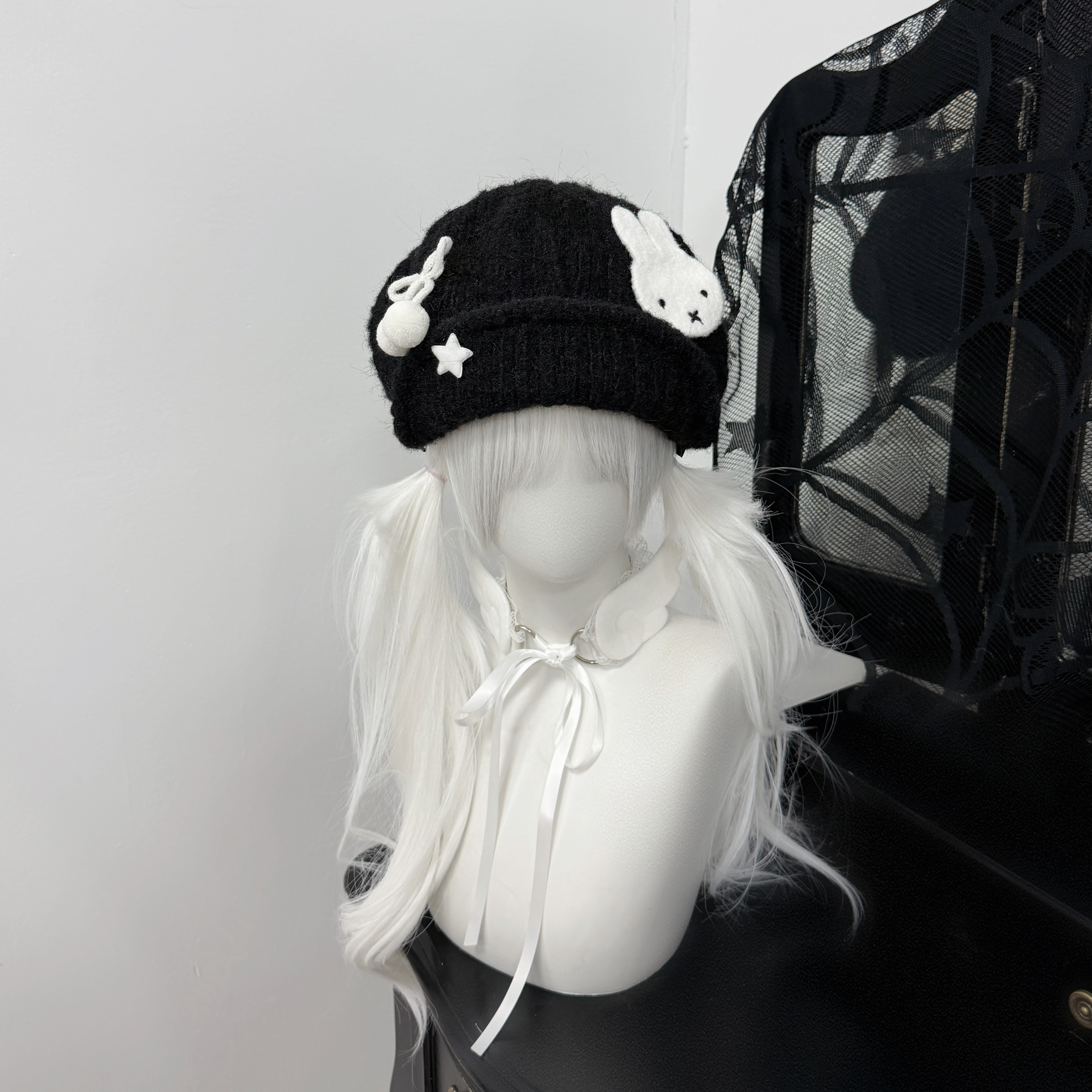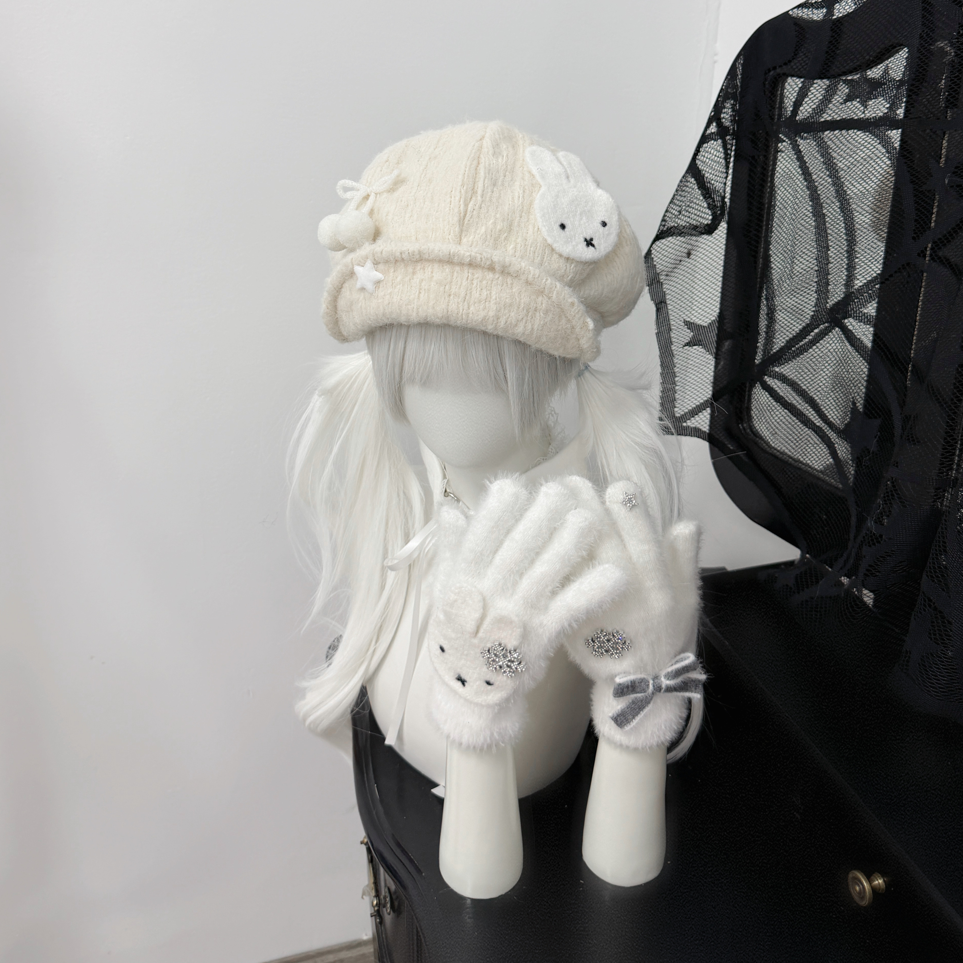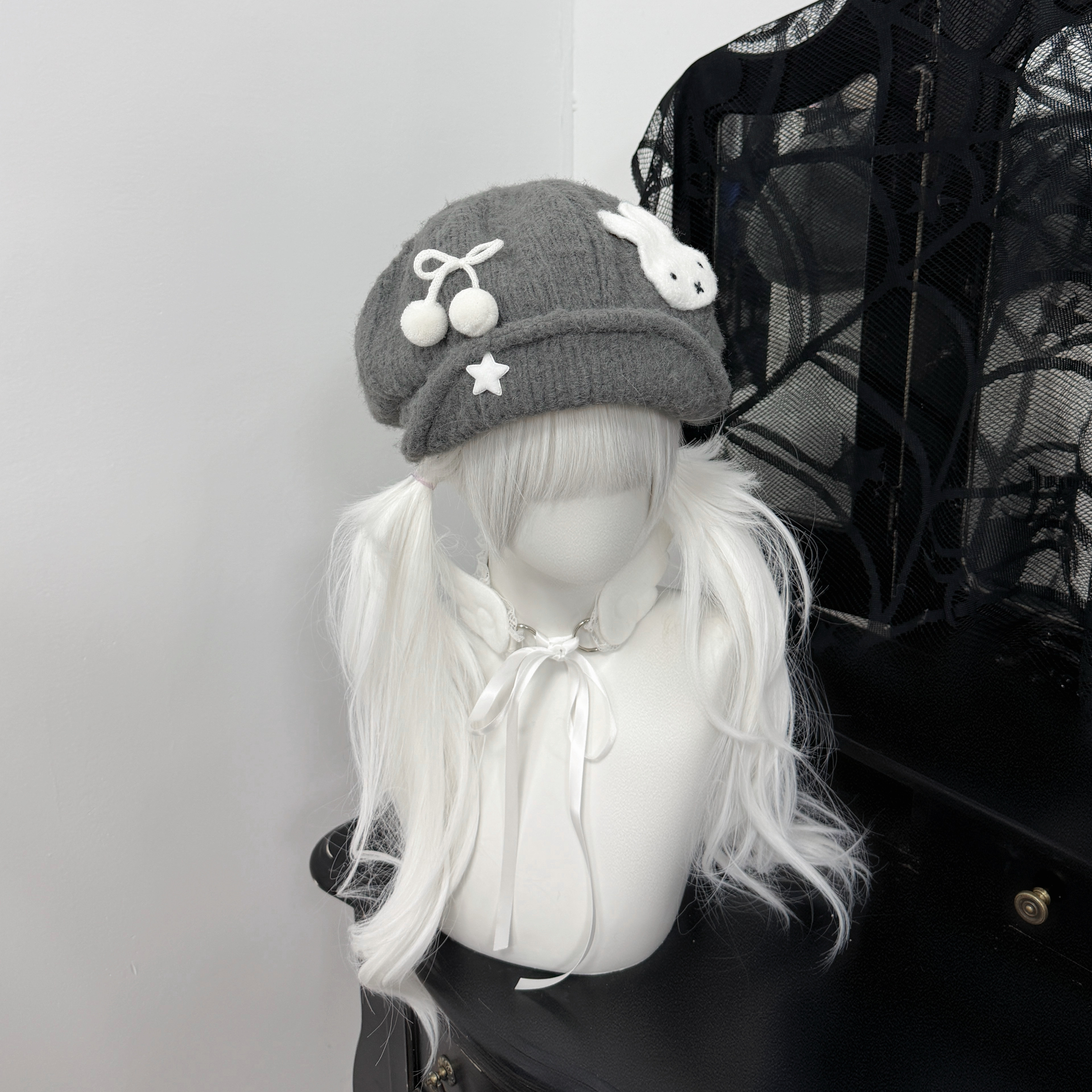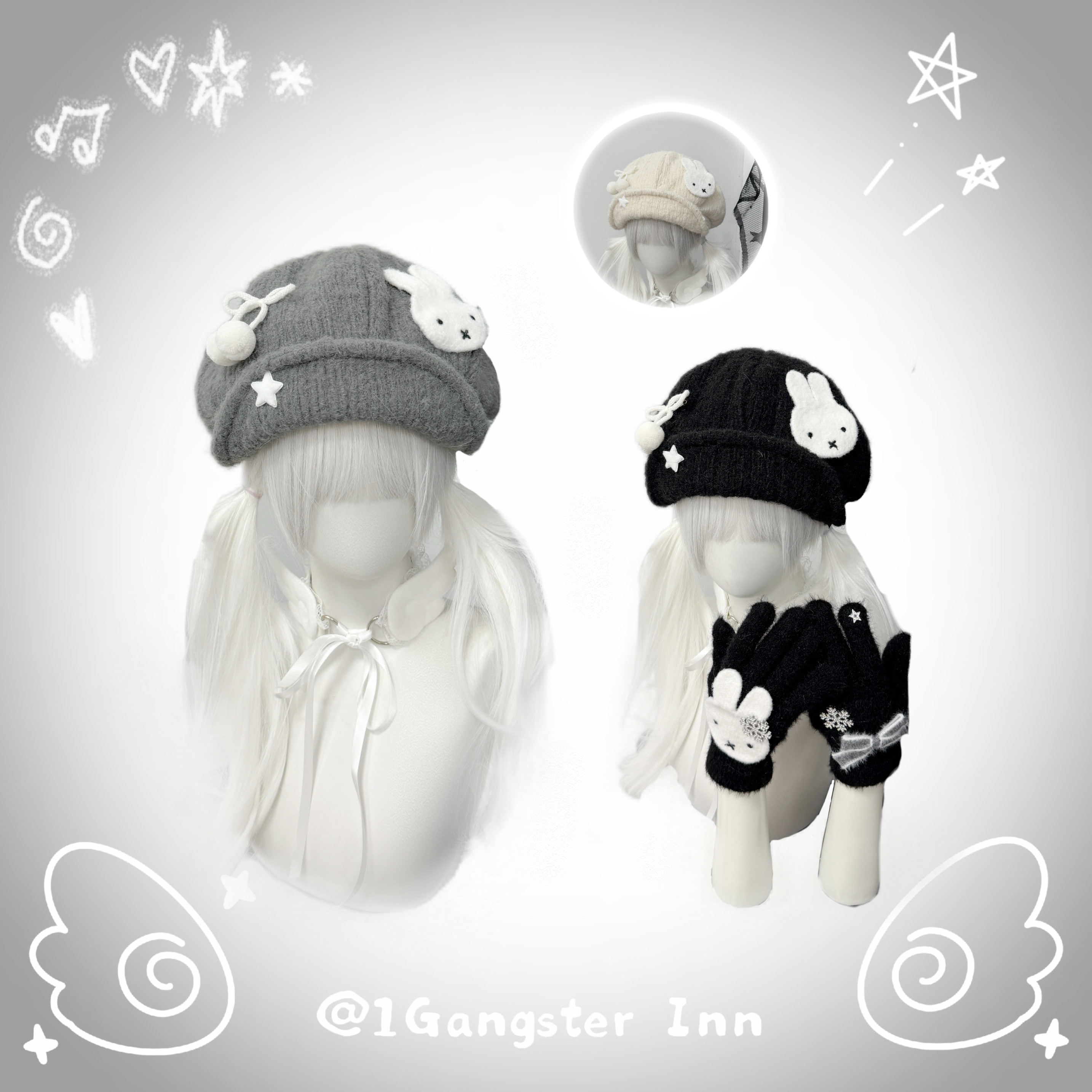 📚 1Gangster Inn米菲兔灰色毛绒帽亚文化复古宅萌八角帽贝雷帽百搭