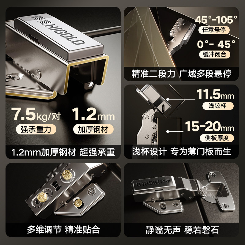 📚 HIGOLD/悍高 二段力铰链橱柜衣柜门厨房卧室合页阻尼缓冲门铰链