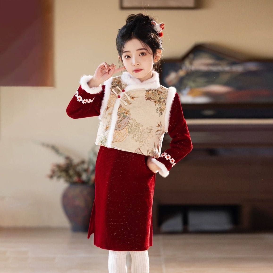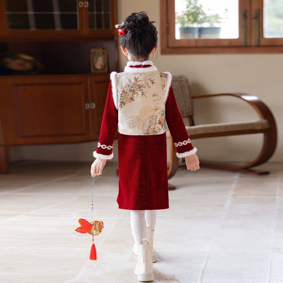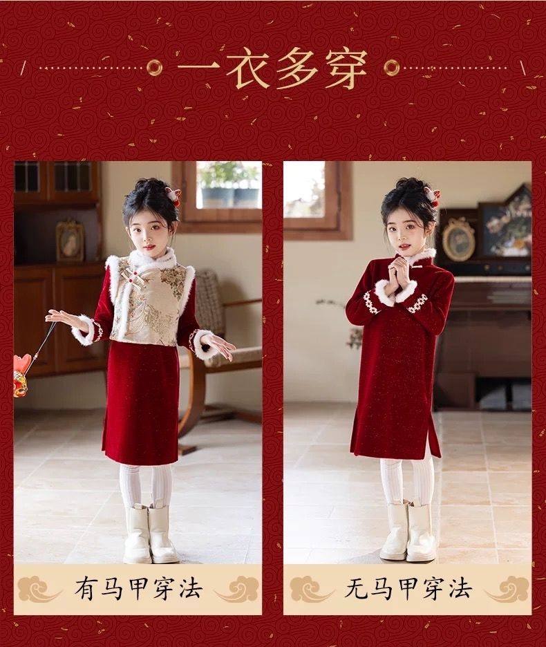 💓“女童红色新年旗袍,冬日温暖新衣,为女孩的过年增添国风韵味!”