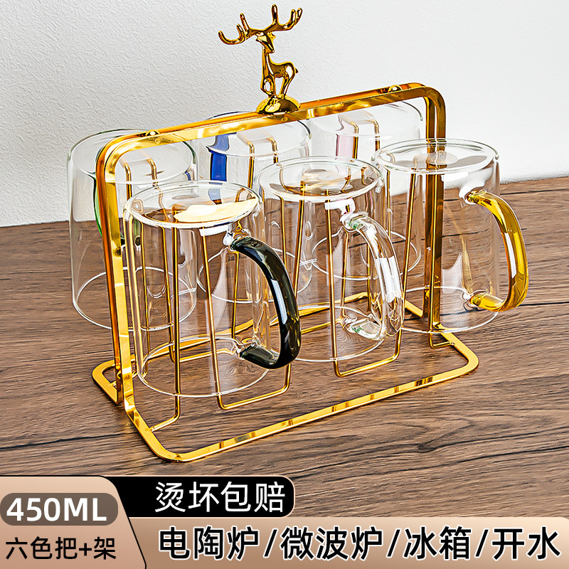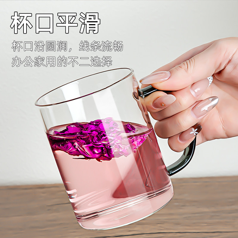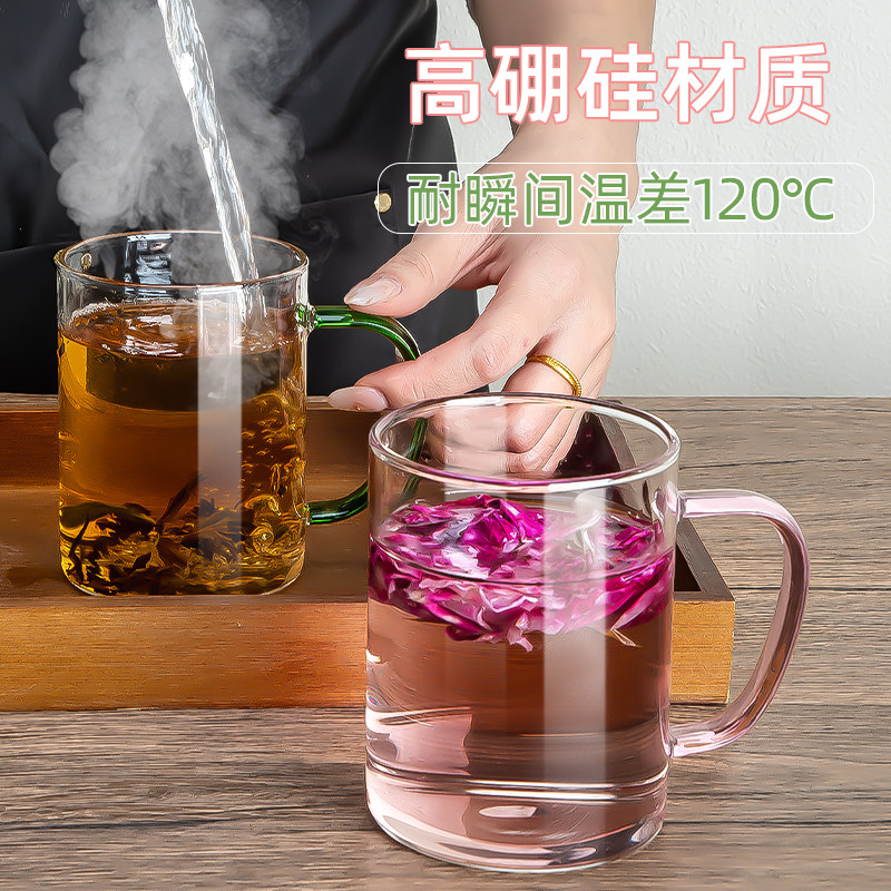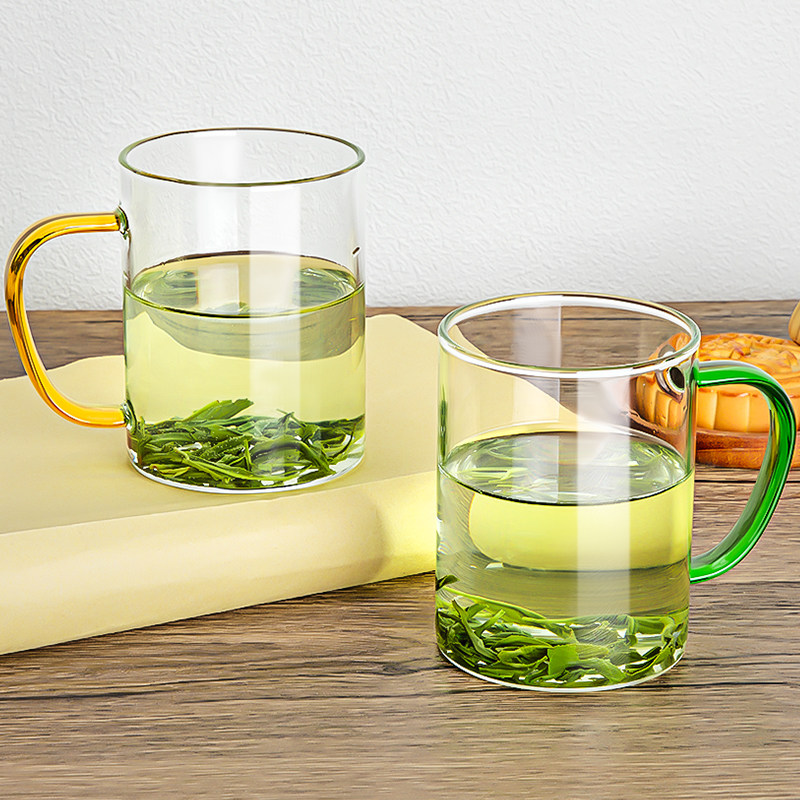 📚 高硼硅玻璃杯套装家用喝茶杯带把手绿茶杯耐高温待客6色水杯新款