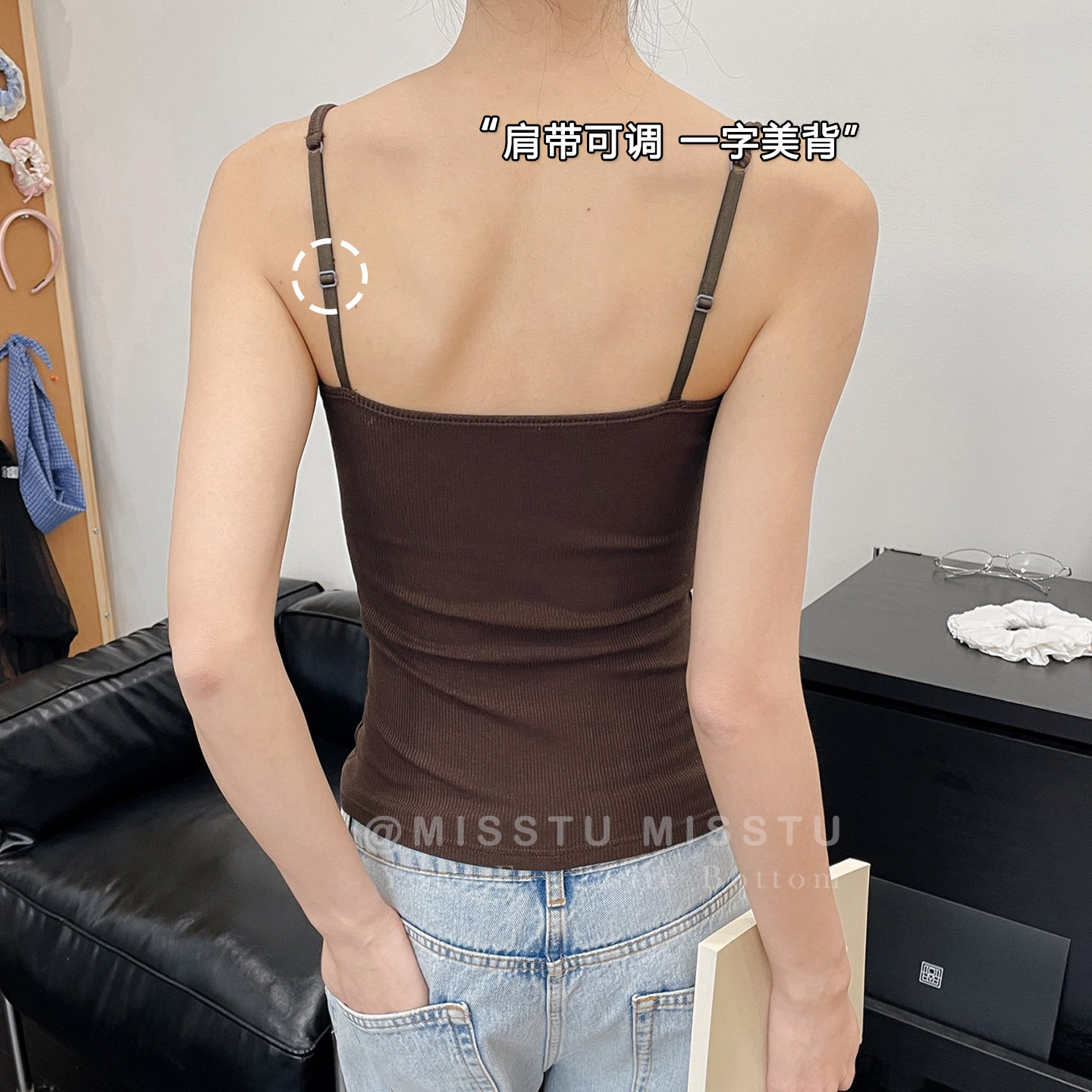 📚 秋冬保暖背心女可调细肩带胸垫深V领竖纹修身羊毛磨绒打底吊带灰s
