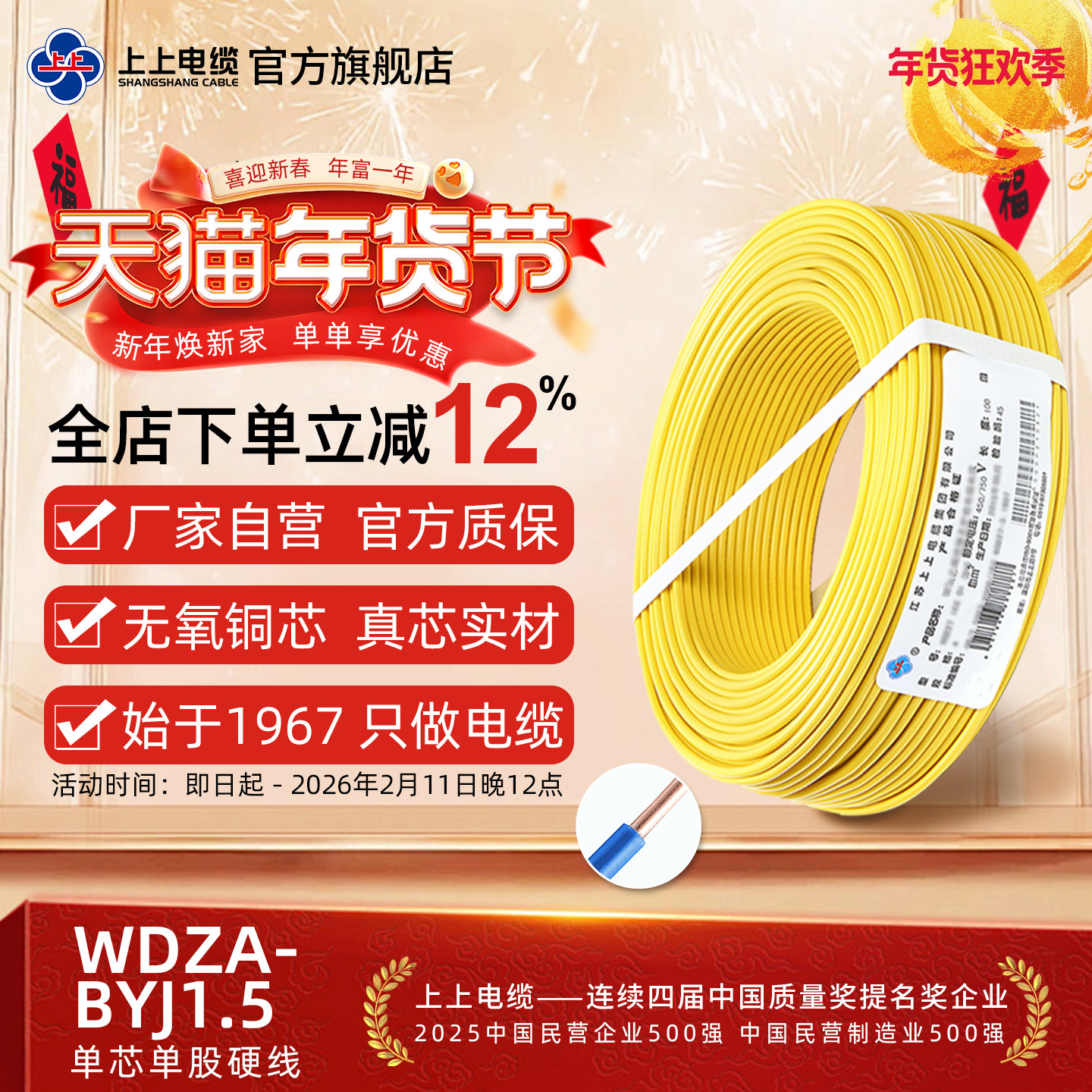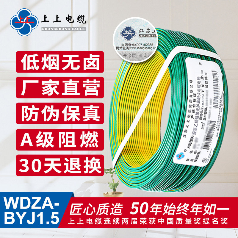 📚 上上电缆 WDZA-BYJ1.5平方辐照无卤低烟A级阻燃家装电线照明线
