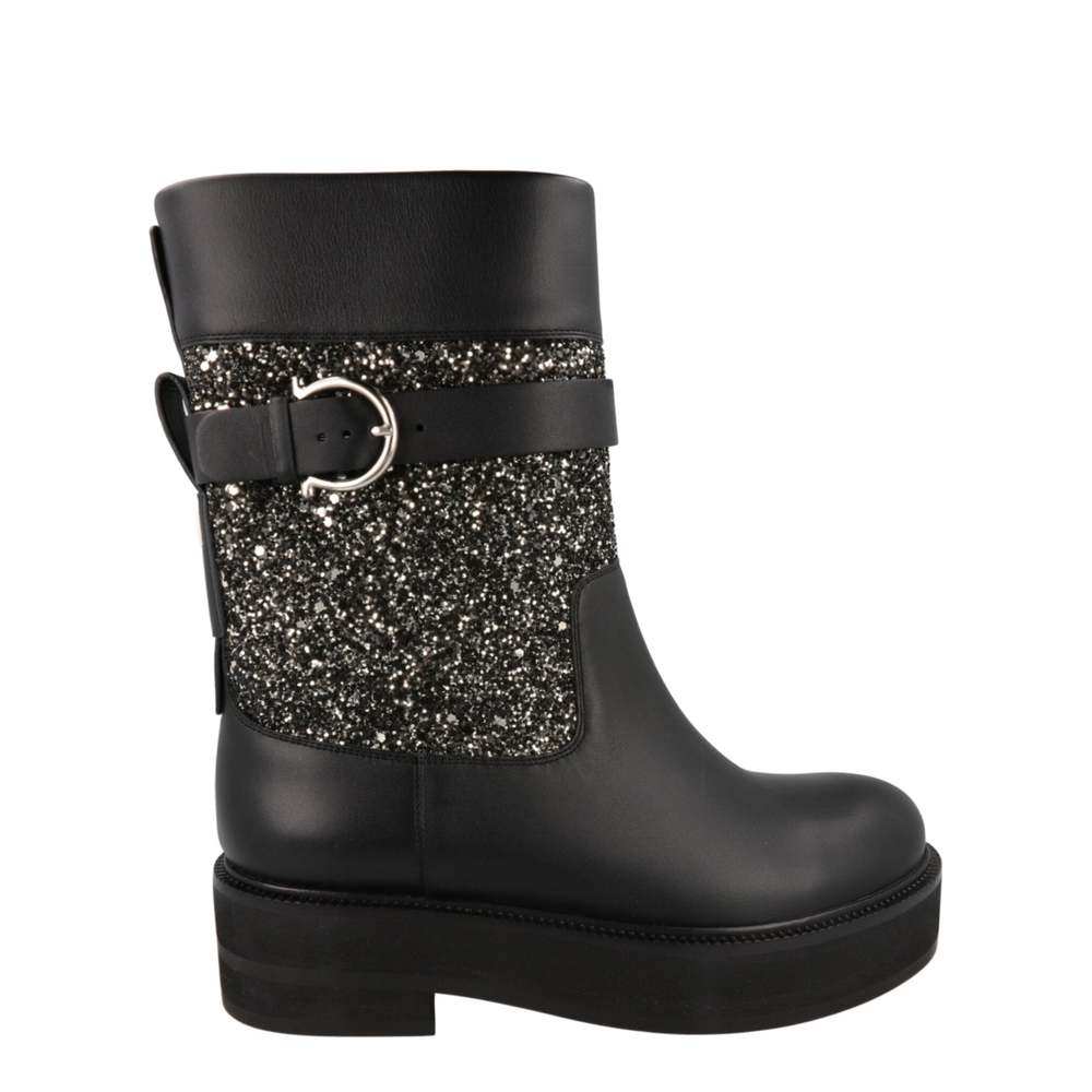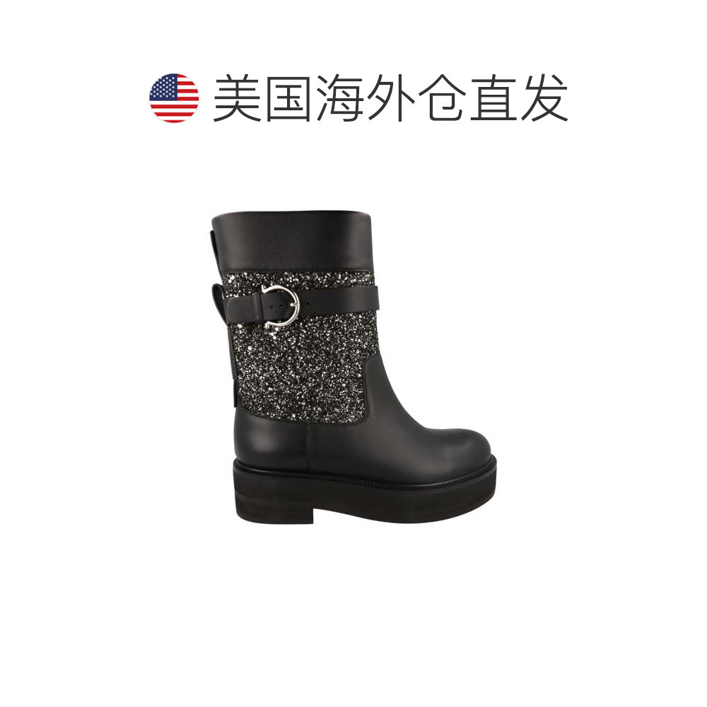 📚 自营salvatore ferragamoEan Glitter Ankle Boots - black 美国