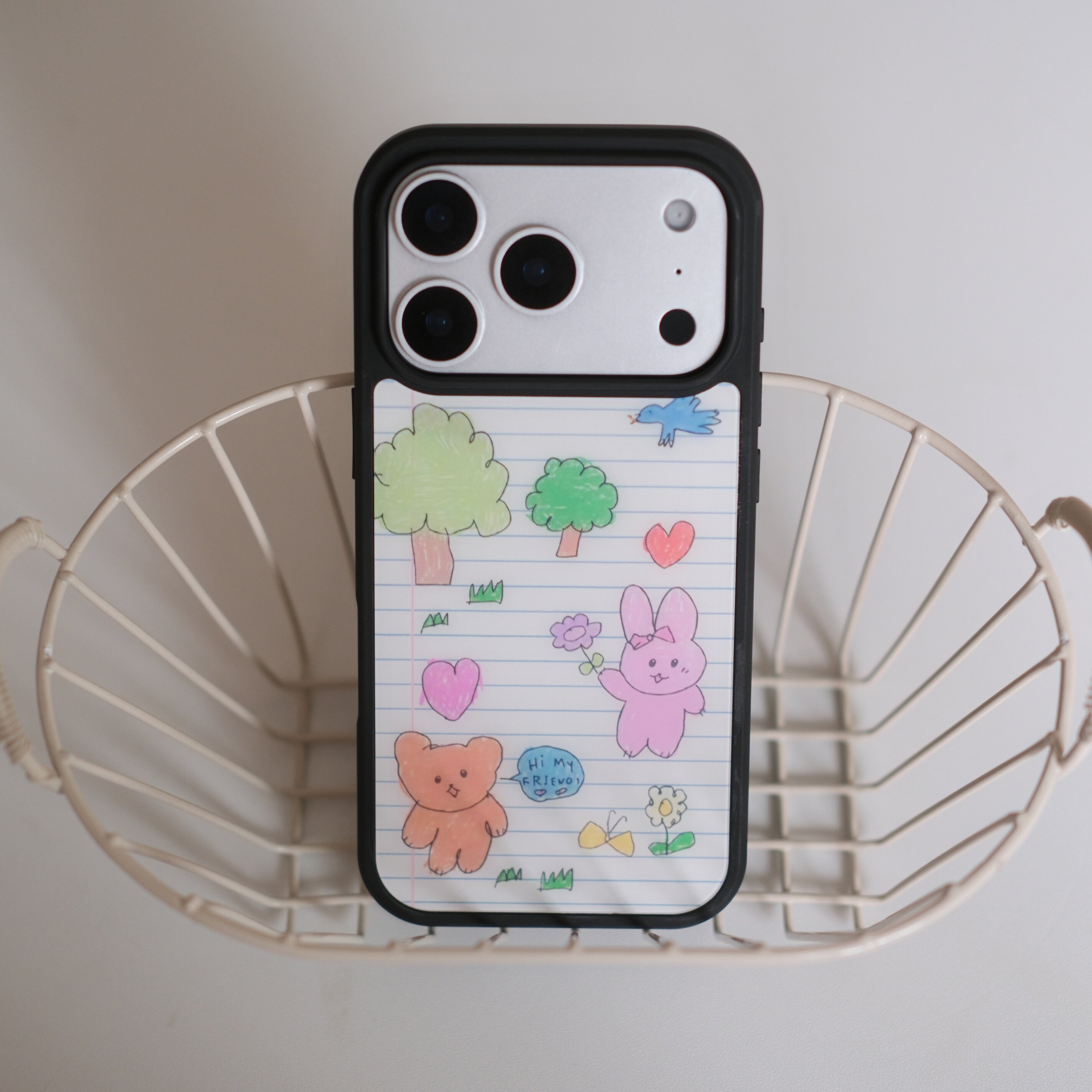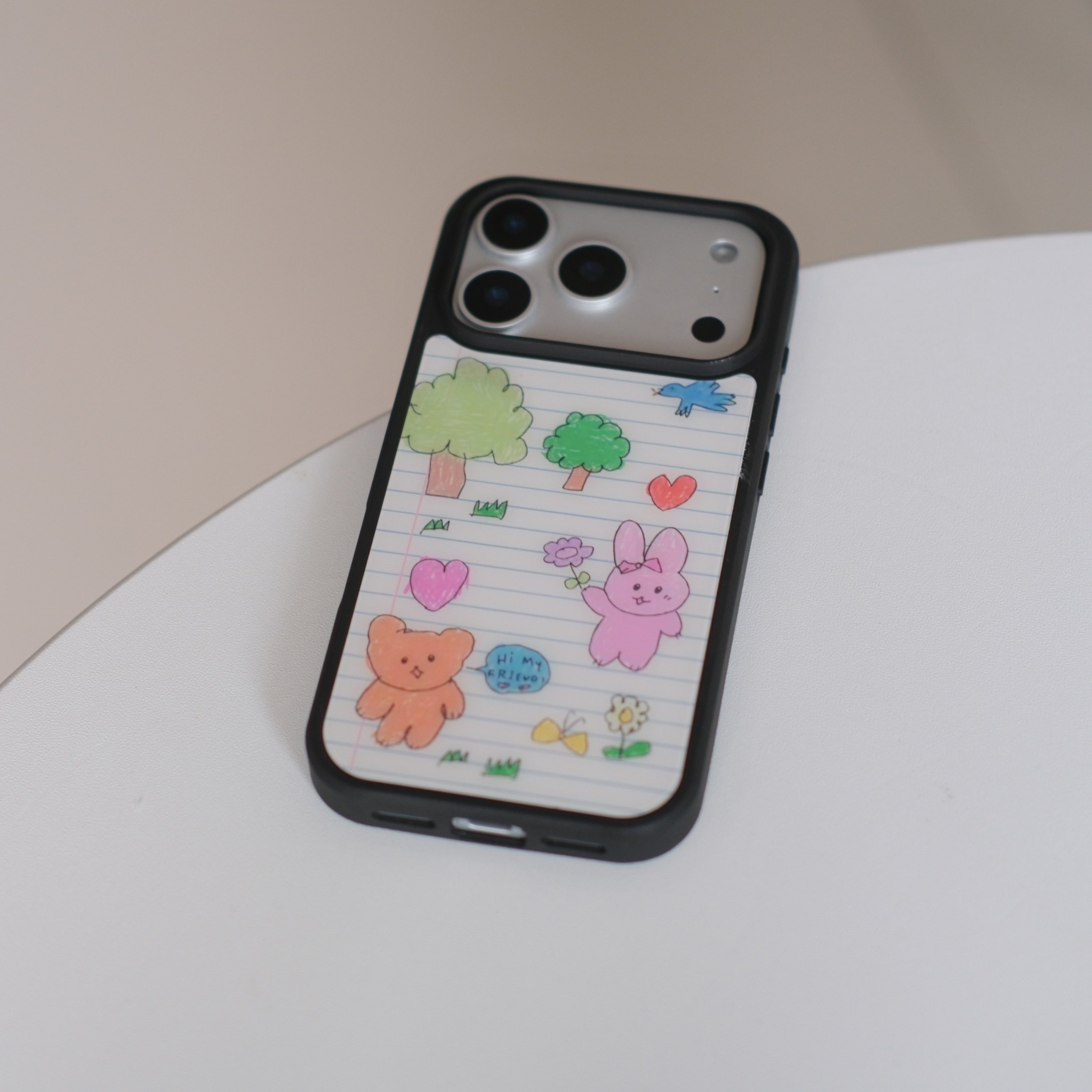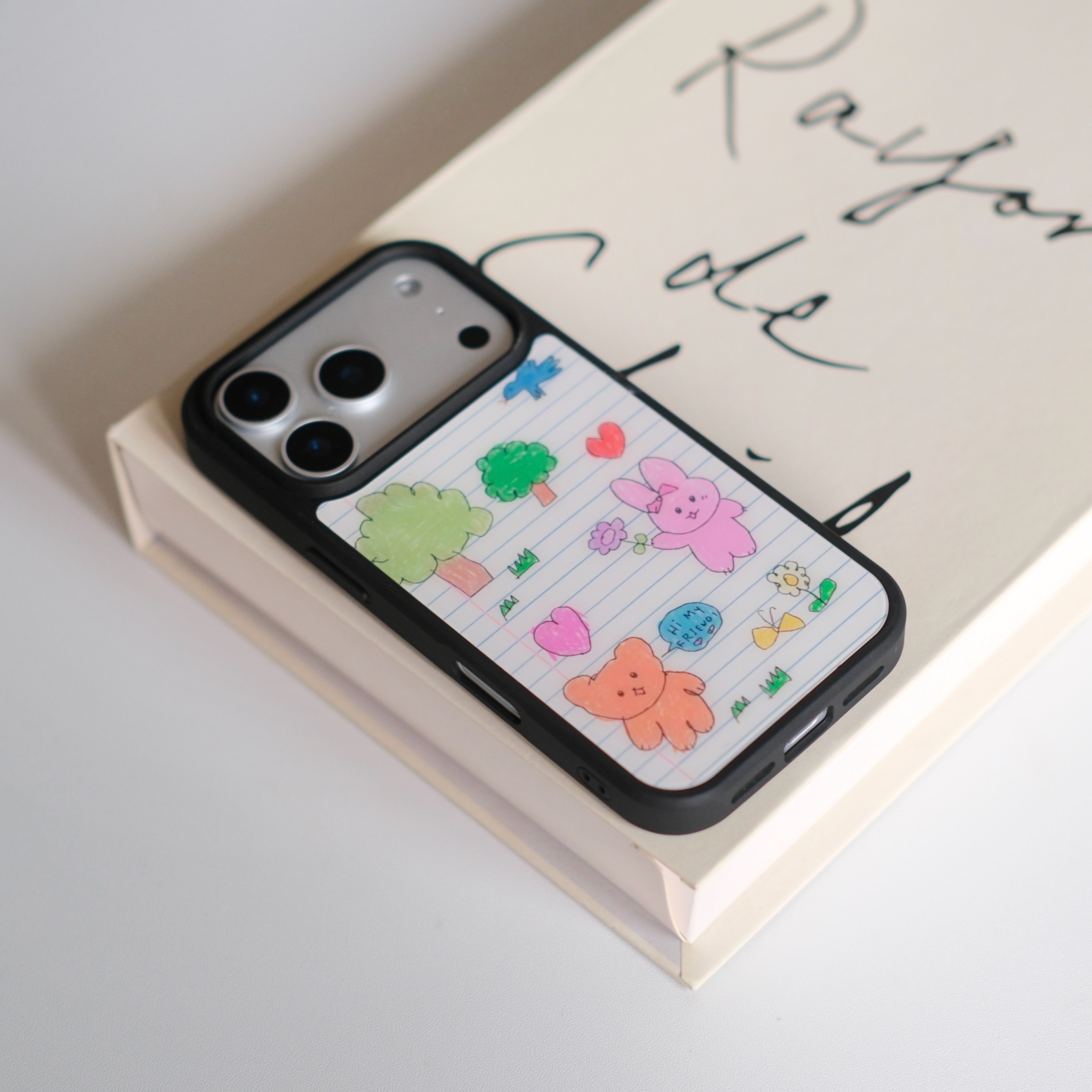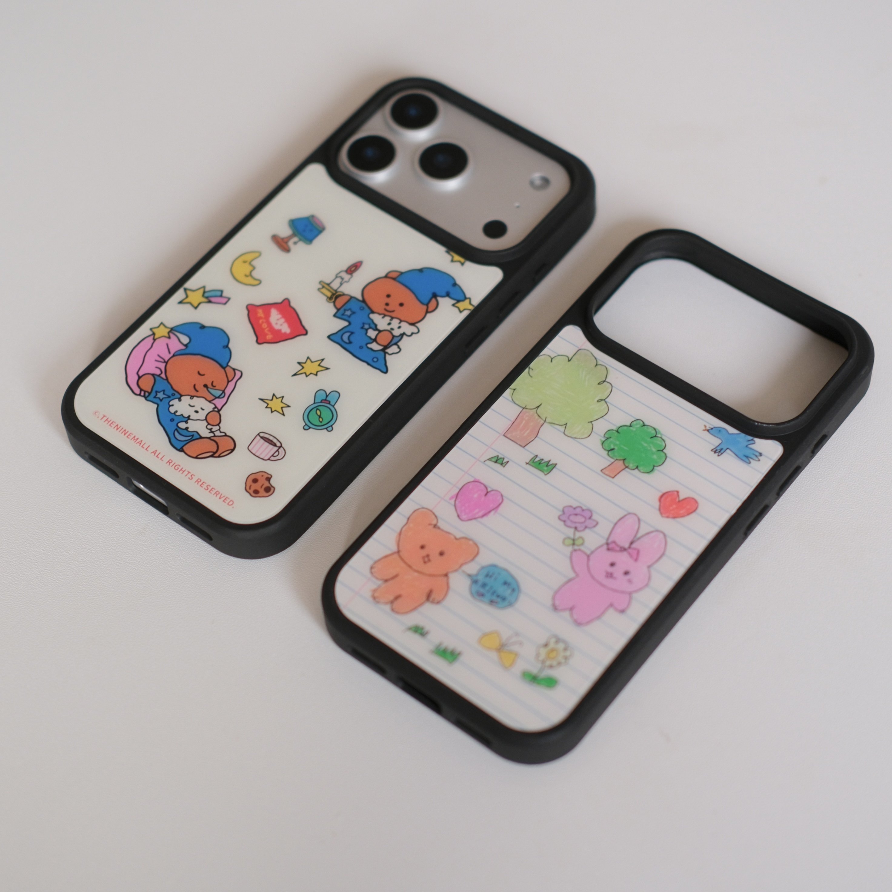 📚 韩国theninemall春游小伙伴磨砂玻璃磁吸手机壳苹果iPhone17promax手机壳16pro黑框软边15手机壳14pro全包16