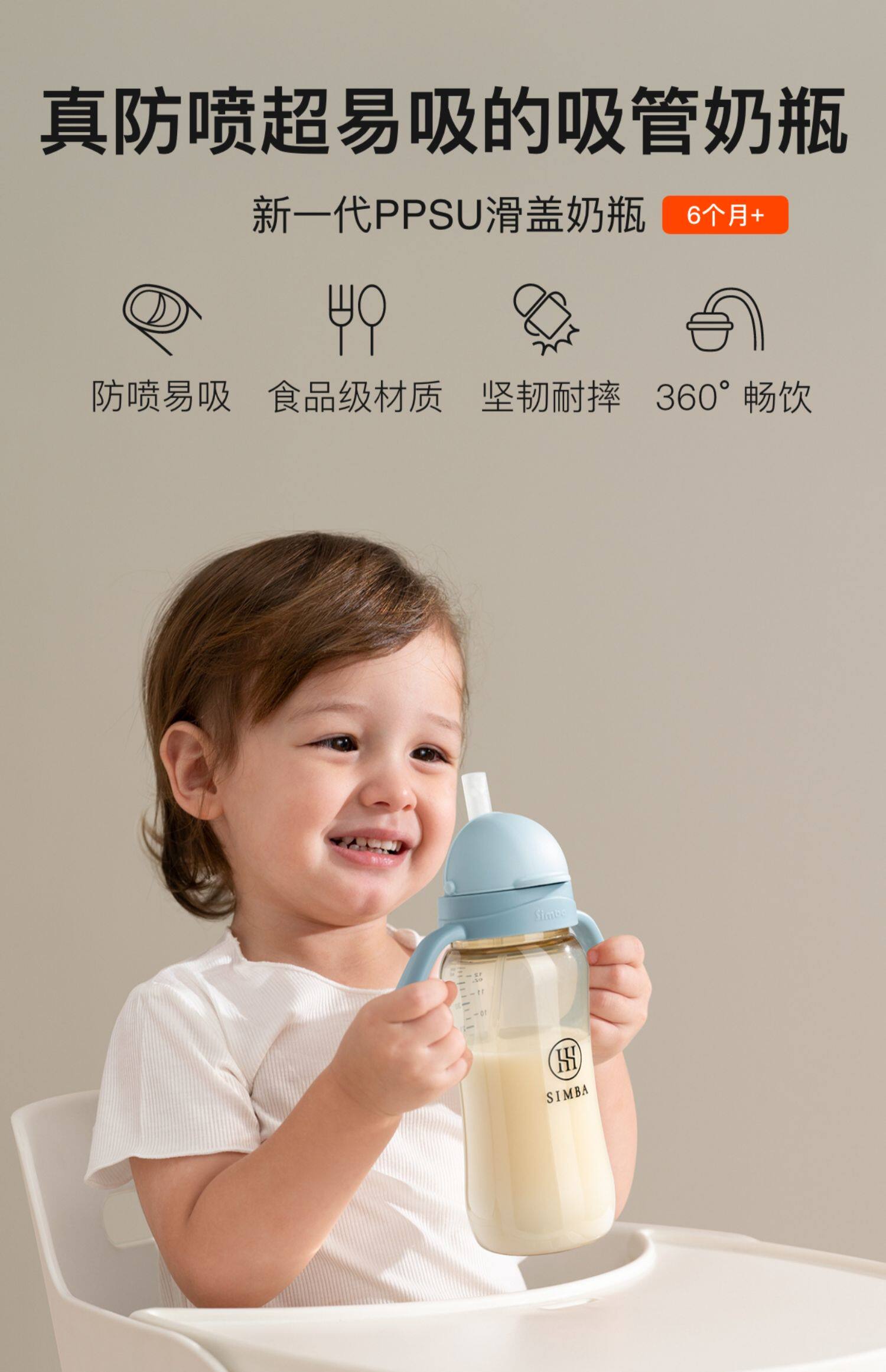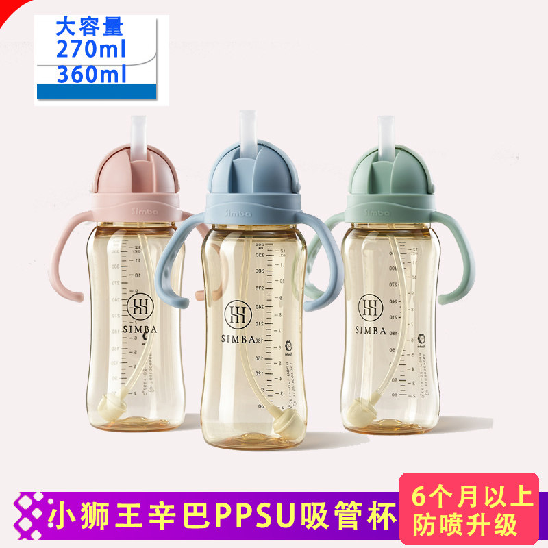 📚 防喷升级PPSU宽口径带柄滑盖吸管杯小狮王辛巴水杯宝宝学饮杯耐摔