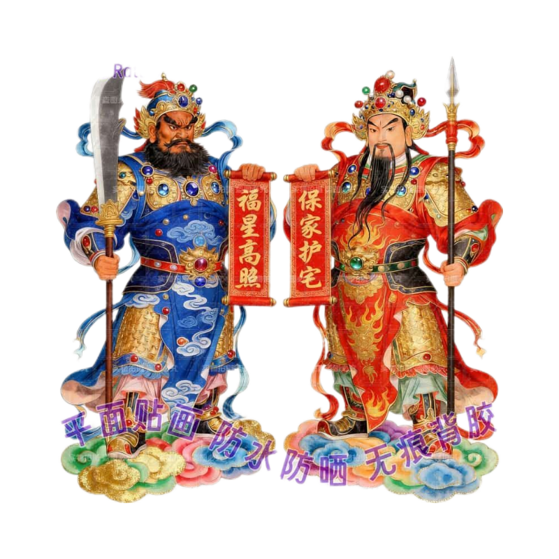 📚 守护家宅大门门神贴纸无背景自贴画家用门贴窗户防水镇宅年画装饰