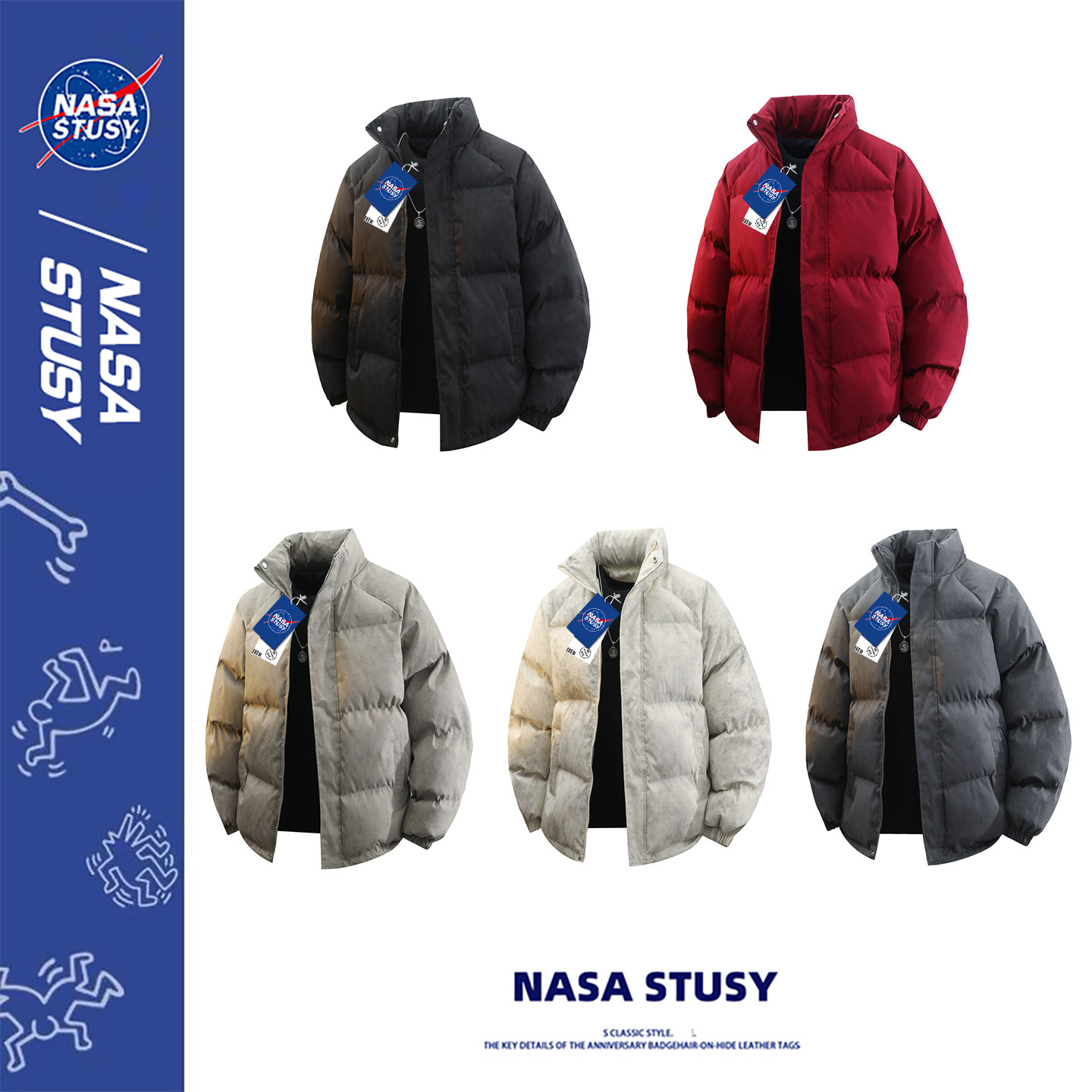 📚 NASA STUSY美式2025冬季新款加厚保暖棉衣男款棉袄羽绒棉服外套