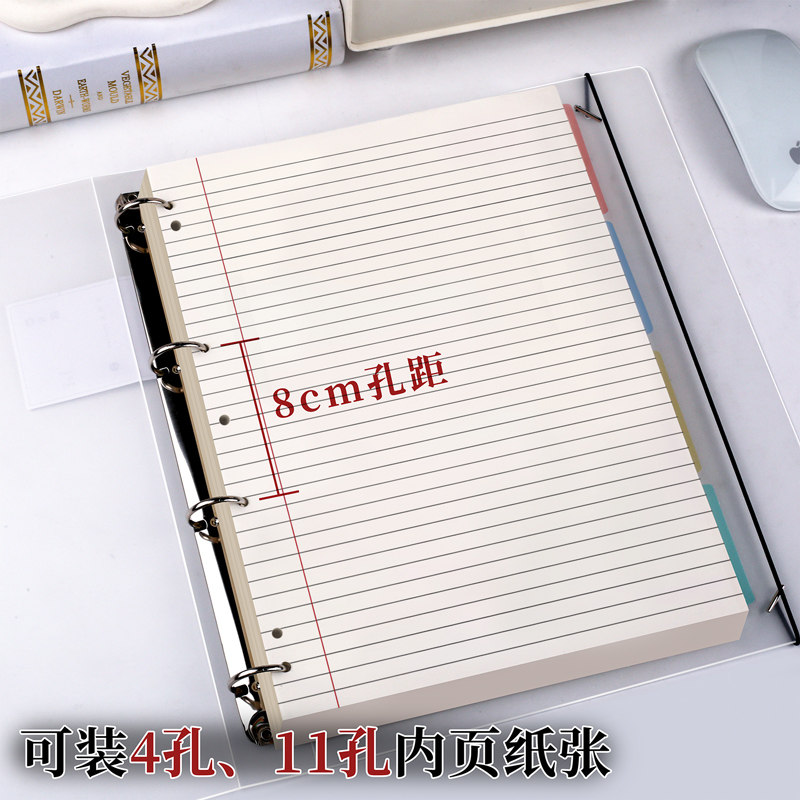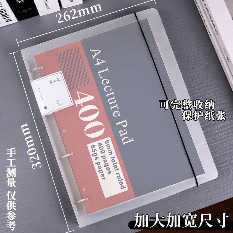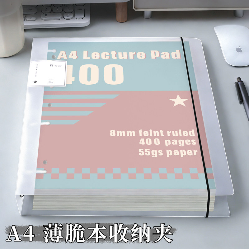 📚 a4美式薄脆本活页夹4孔高颜值400页收纳夹加厚简约透明8mm笔记本本子外壳绑带收纳可平摊大容量记事本活页壳