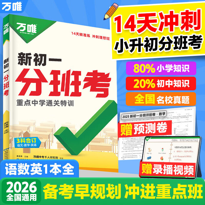 📚 2026新书万唯中考新初一分班考语文数学英语合订一本全小学毕业衔接初中初一入学分班考试卷暑假作业预科必刷题实验班学霸神器万维