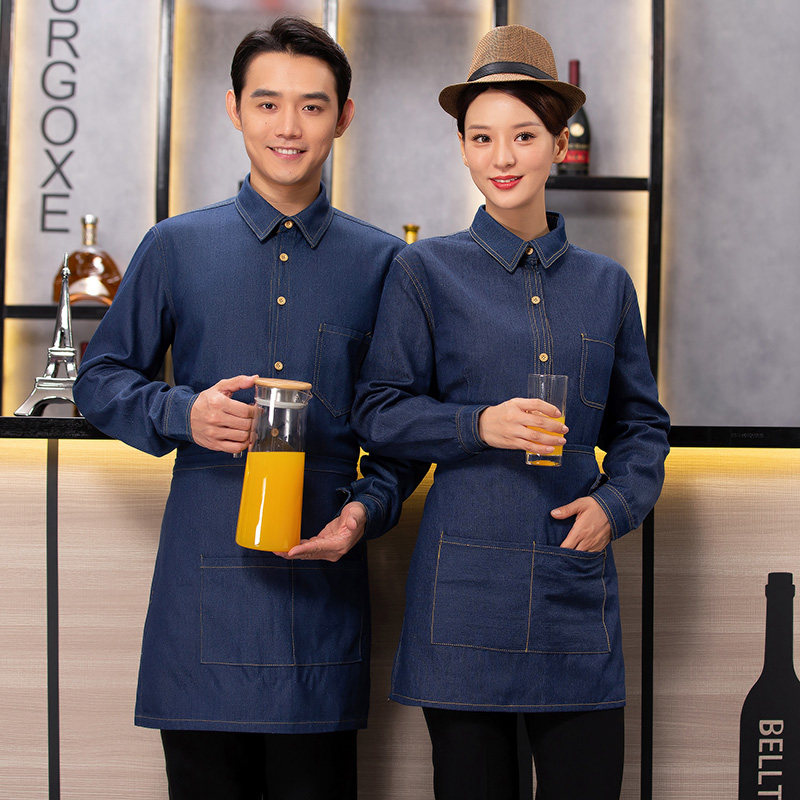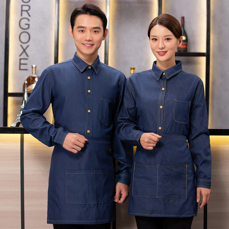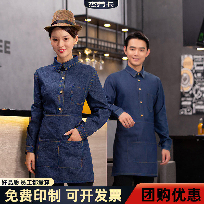 📚 服务员工作服秋冬装饭店西餐厅服装男女快餐店超市工作服长袖牛仔